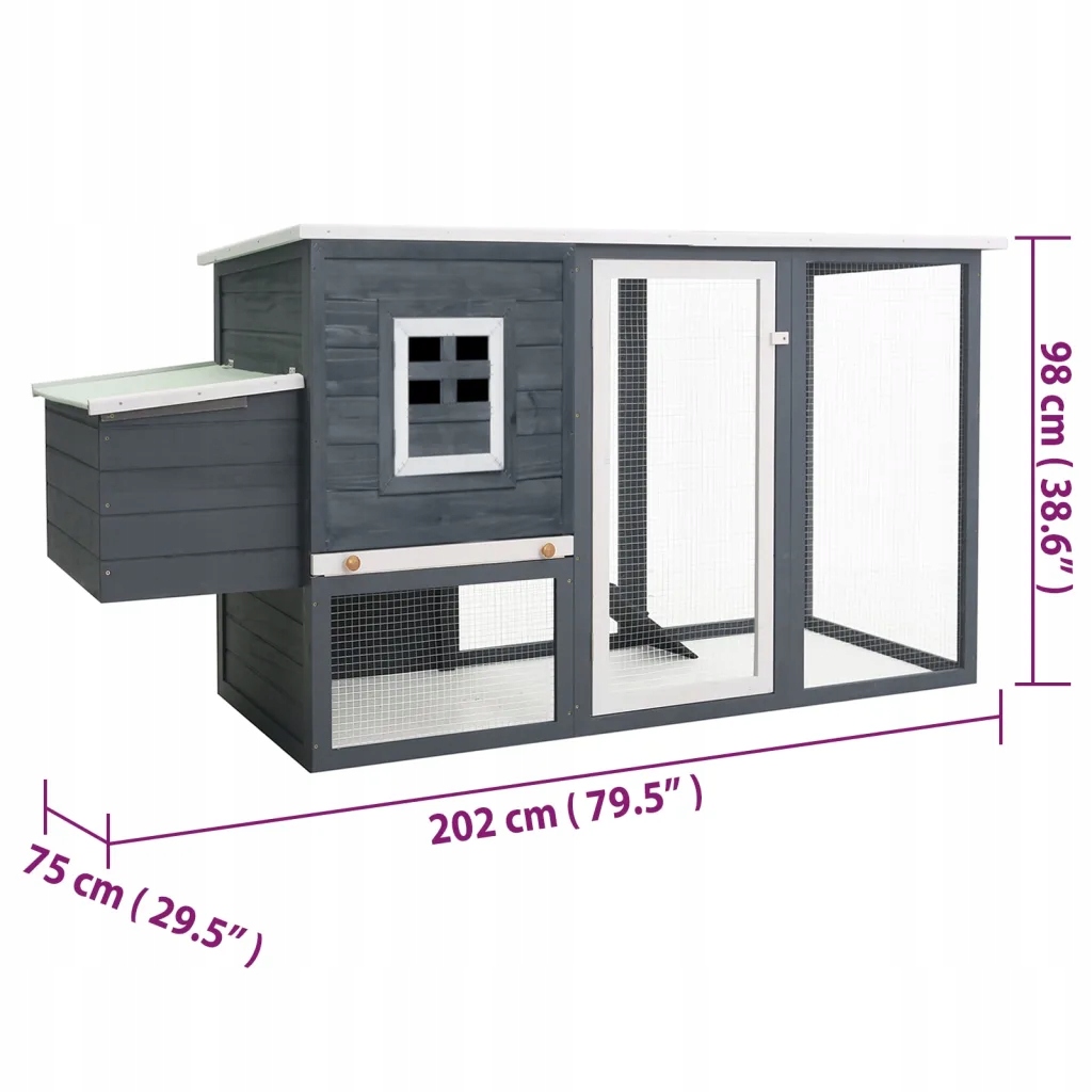Ця дерев'яна клітка для курей забезпечує великий комфортний простір. Виготовлений з високоякісної соснової деревини, курник прослужить багато років. Зелений водонепроникний дах захищає від дощу, створюючи тепле та комфортне місце для відпочинку всередині будинку. Завдяки щільній металевій сітці ваші кури завжди отримають достатньо свіжого повітря. Легкий для проходу пандус веде вас з рівня землі на верхній поверх. Знімний лоток полегшує очищення. Двері можна закрити на засув. Крім того, зона для відкладання яєць призначена для зберігання яєць у безпечному місці.