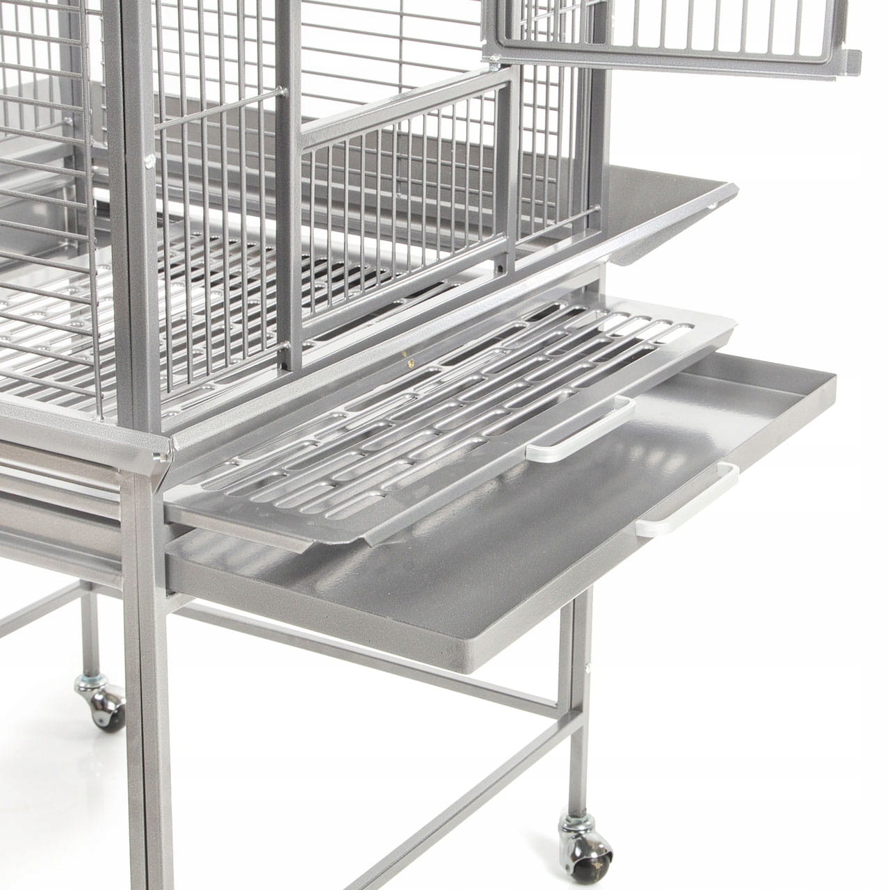 - Чотири чаші з нержавіючої сталі та жердочки постачаються разом із кліткою.