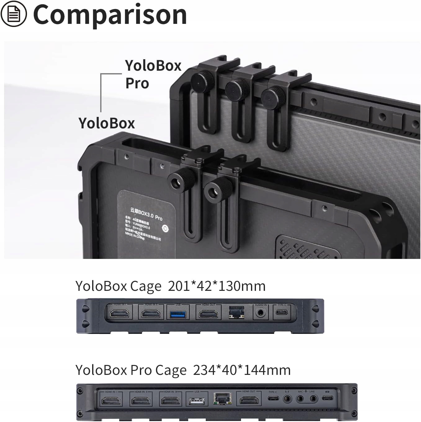 - Клітка Yolobox оснащена холодним тримачем взуття та отвором 1/4 різьби і може мати доступ до інших аксесуарів, таких як світильники, мікрофони та інші пристрої.