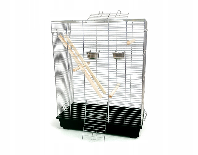 Представлена клітка призначена для птахів і виготовлена з міцного оцинкованого дроту. Дверцята вгорі досить великі, що забезпечує зручний доступ всередину клітки. Вхідні дверцята, трохи менші, є зручною альтернативою для дрібних робіт у клітці. Лоток виготовлений із безпечного для тварин матеріалу та сертифікований. Клітка дуже естетична і міцно виготовлена. Клітка розкладна.
