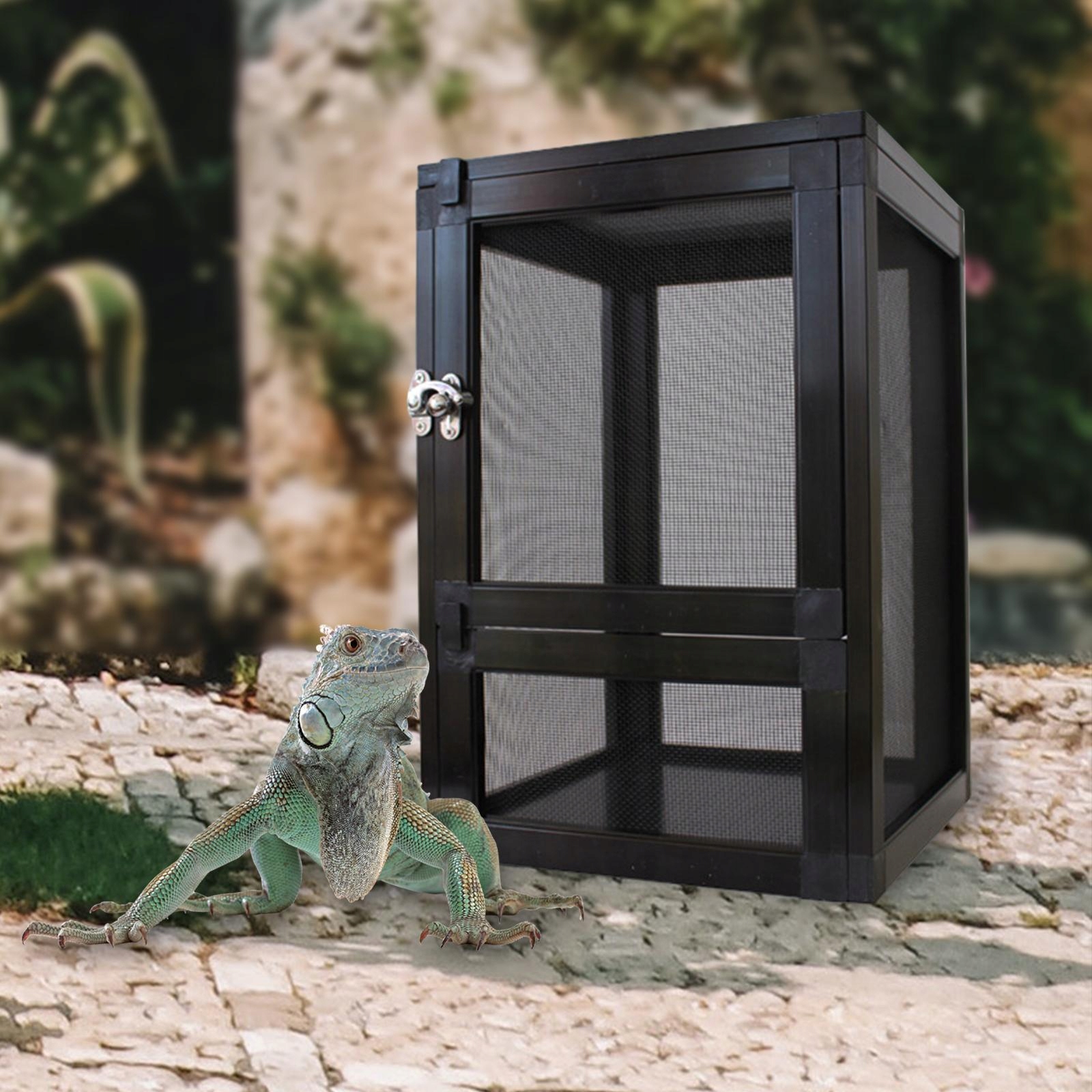 Клітки з повітряною решіткою з дверцятами та засувкою Ящик для розведення рептилій Чорний