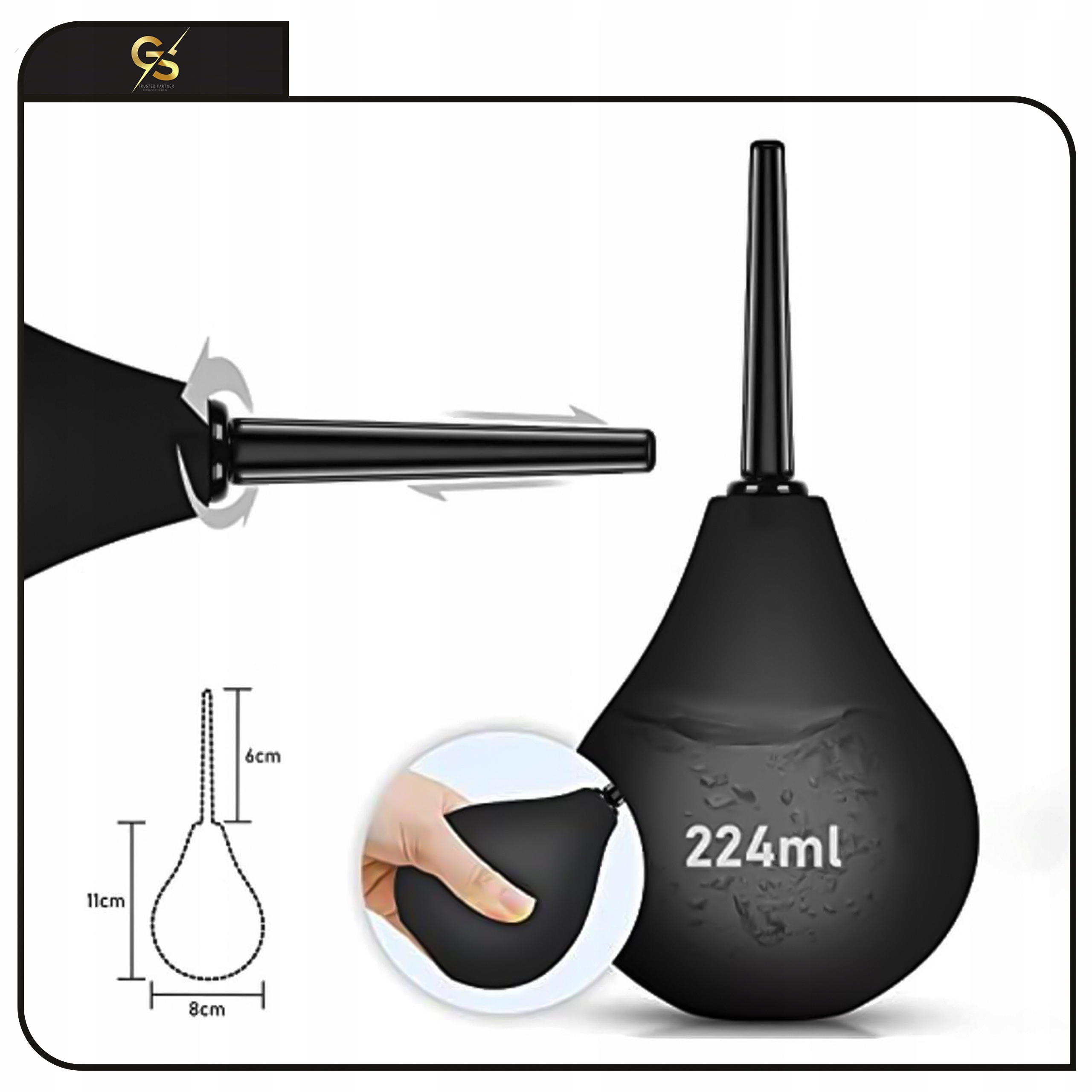 Виріб виготовлено з матеріалів найвищої якості, що забезпечує повну безпеку під час використання. Гладка поверхня та заокруглений кінчик усувають ризик подразнення, а м'яка, гнучка колба дозволяє точно контролювати тиск рідини. Водонепроникний дизайн дозволяє використовувати виріб під душем, забезпечуючи максимальну гігієнічність.