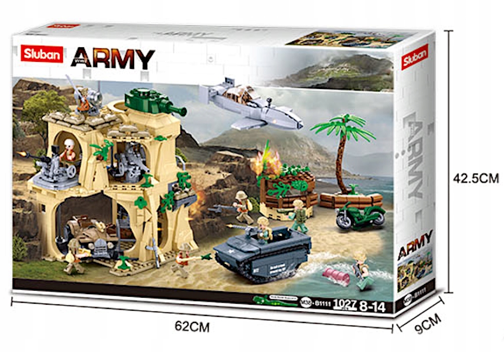 Klocki BITWA O IWO JIMĘ makieta WOJSKO 9 FIGUREK +CZOŁG +BARKA +2 LEGO BROŃ