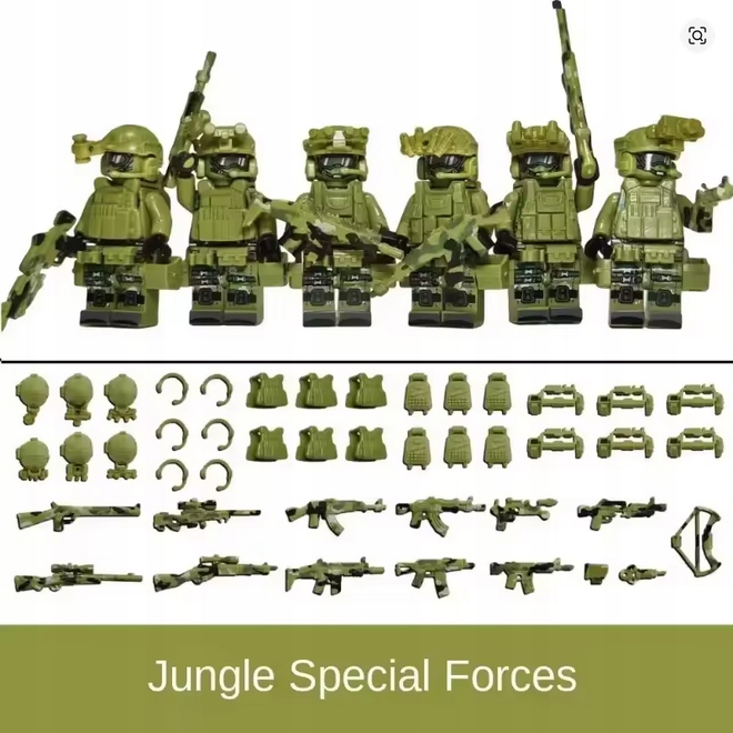 Я пропоную унікальний набір із 6 АРМІЙСЬКИХ фігурок, який чудово доповнить будь-яку колекцію та принесе масу задоволення. Кожна фігурка оснащена детальними аксесуарами, такими як захисні щити, зброя, жилети, шоломи та рюкзаки. Завдяки цьому ви можете створити реалістичну спеціальну команду, готову до будь-якої місії!
