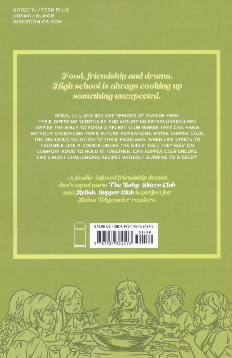 Нора, Лілі та Ірис є старшими на приморській мові. Їх різні графіки та монтажні позакурси надихають дівчат на створення таємного клубу, де вони можуть повіситись, не жертвуючи цим майбутнім прагненням. Введіть клуб вечері, смачне вирішення їх проблем. Коли життя починає руйнуватися, як печиво під ногами дівчат, вони покладаються на комфортну їжу, щоб утримати її разом. Чи може вечеряти клуб пережити найскладніші рецепти життя без спалення до хрусткого?