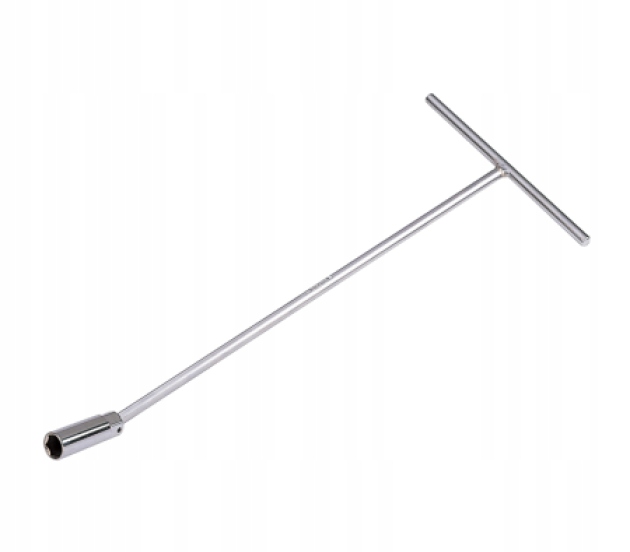 Ключ виготовлений зі сплаву хром-ванадієвої сталі Cr-V, хромована та полірована поверхня. Інструмент призначений для перенесення великих вантажів. Т-подібна форма і подовжене плече полегшують викручування свічок у важкодоступних місцях. Шестигранний ковпачок з внутрішньою гумкою встановлений на шарнір, що дозволяє відхилити ключ і дістатися до місць, до яких виробник ускладнює доступ звичайними ключами.