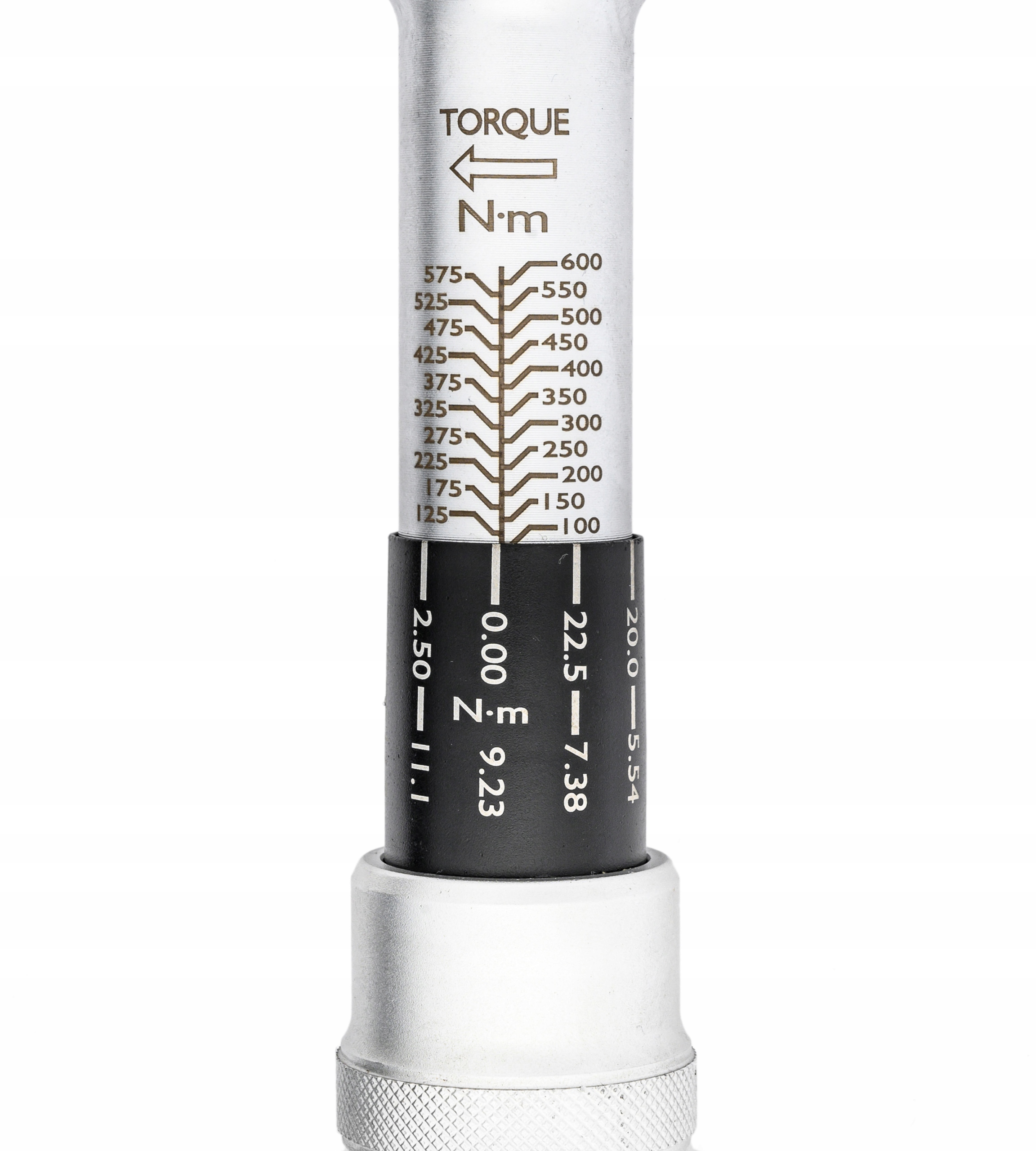 Чітка, вигравірувана шкала крутного моменту на гайковому ключі дозволяє точно й точно встановити момент затягування