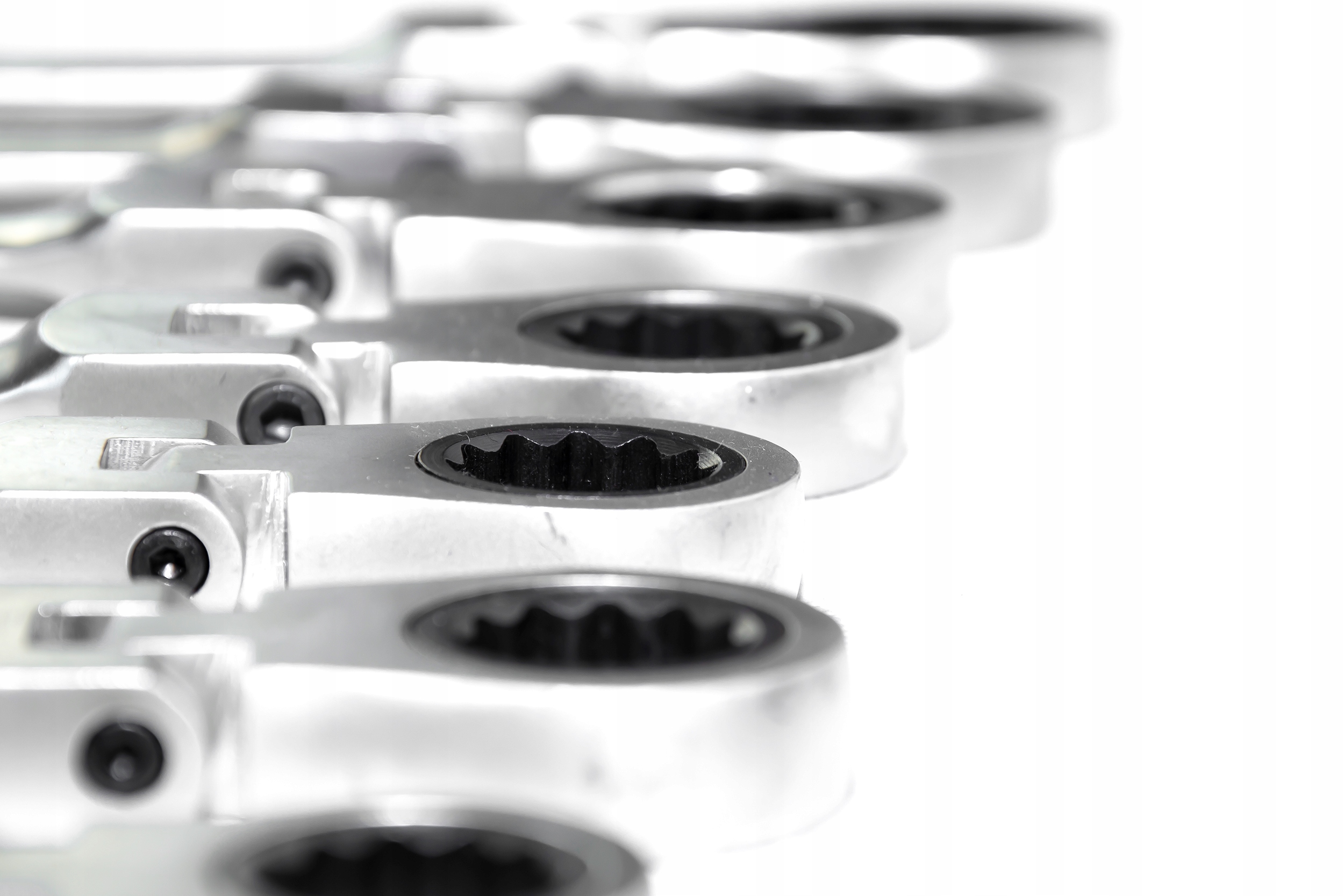 - Усі храпові кільця комбінованих ключів оснащені наконечником Surface Drive, який дозволяє відкручувати гвинт із пошкодженою (круглою) головкою