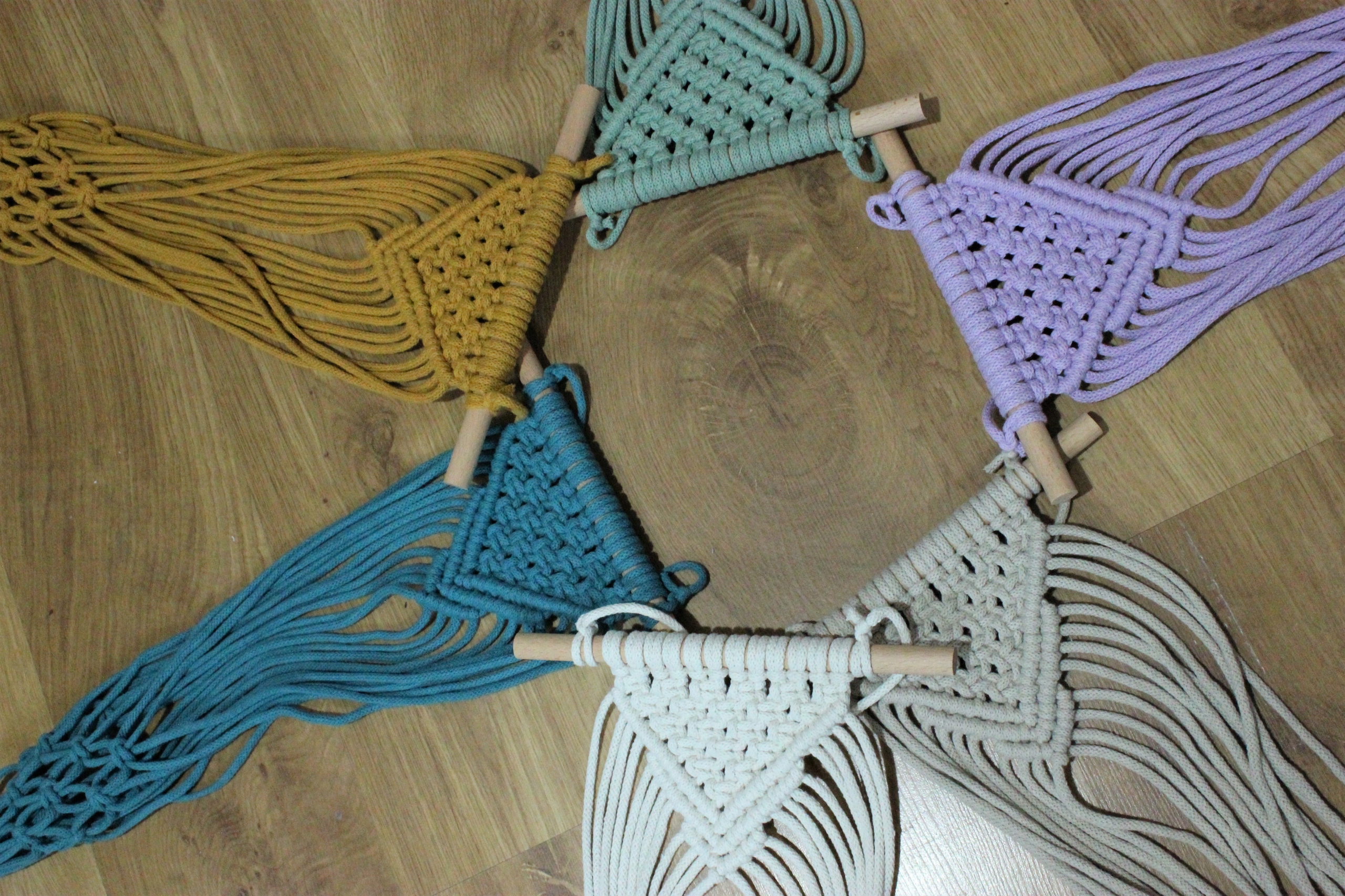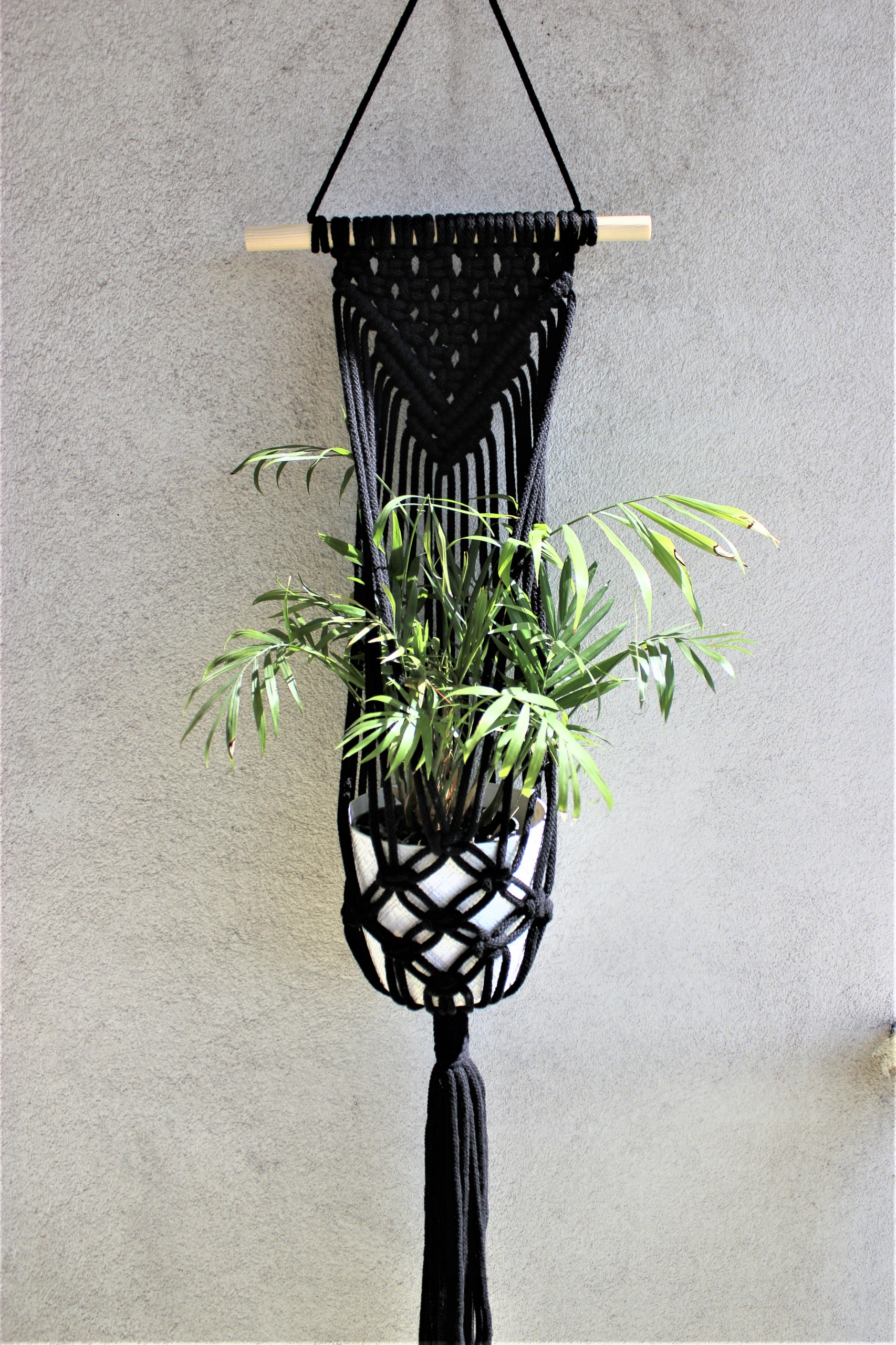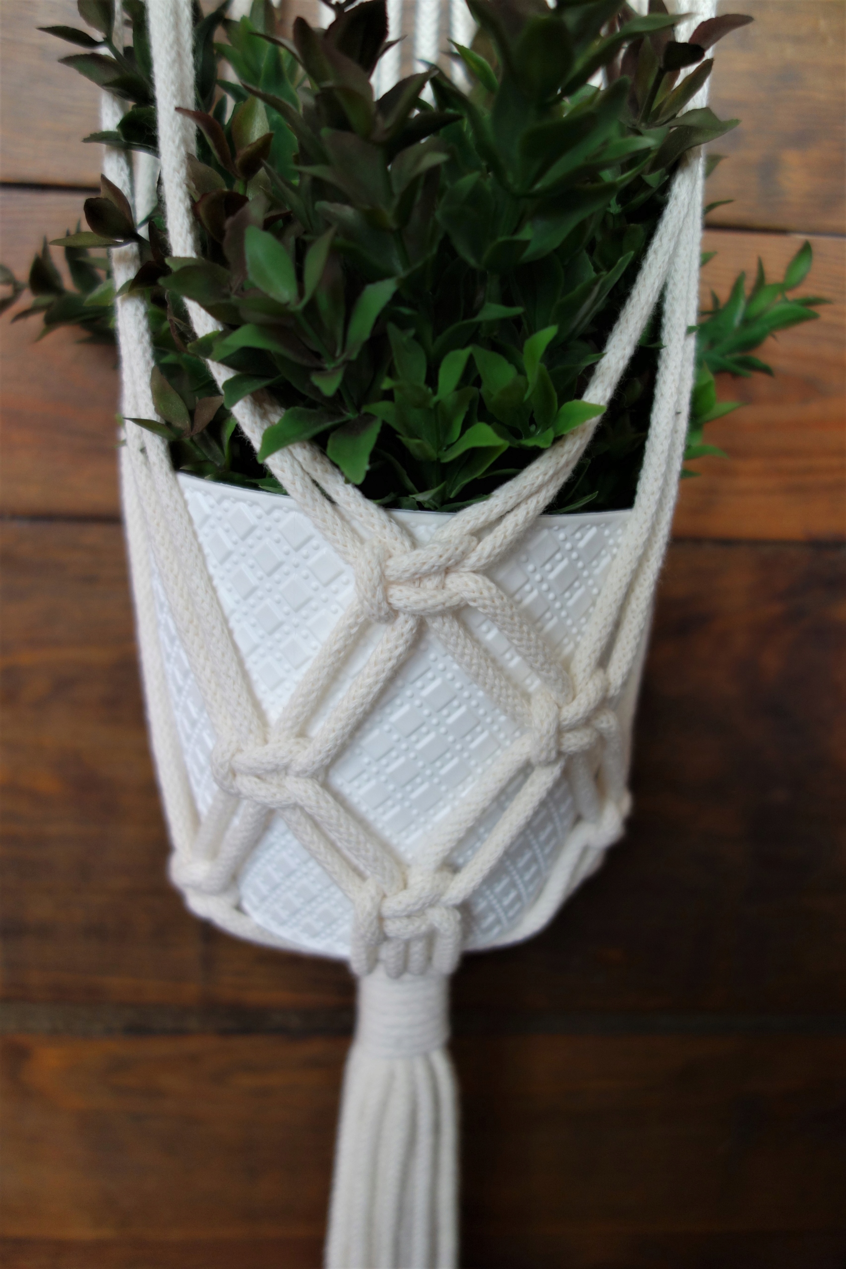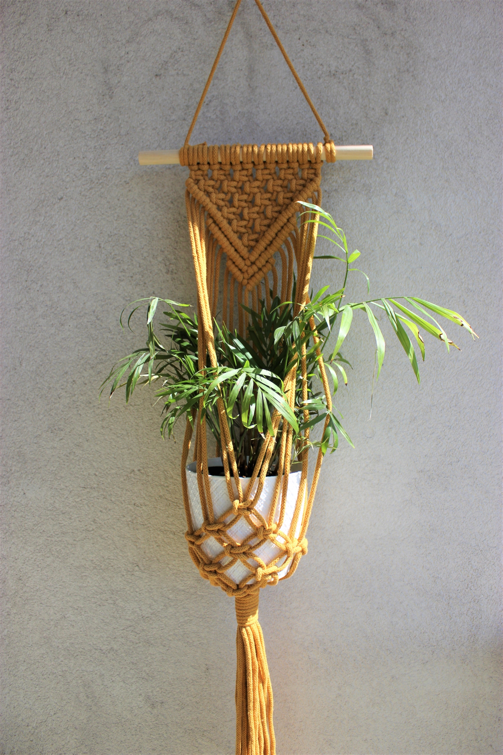 Клумба, що висить на стіні, з шпагату. Макраме.