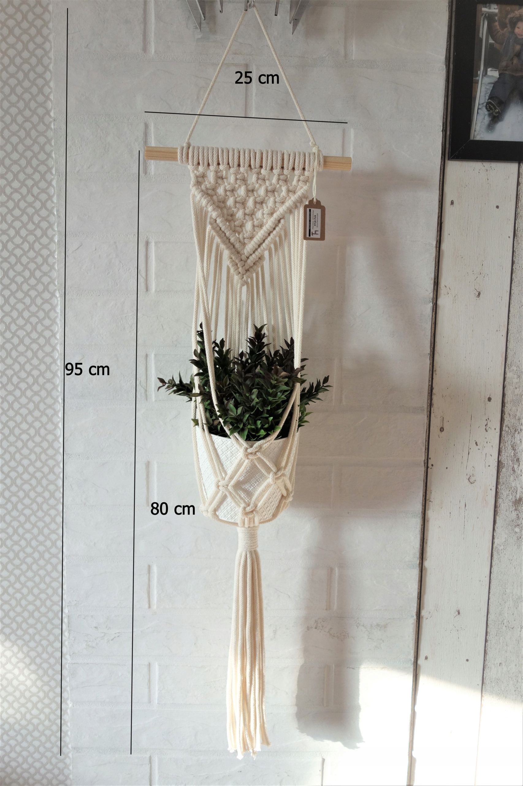 Підставка для квітів із плетеної бавовняної нитки товщиною 5 мм із дерев’яним стрижнем. Колір підставки для квітів - екрю або інший колір з книги зразків (якщо відрізняється від екрю, вказуйте якого кольору - в коментарях до покупки).