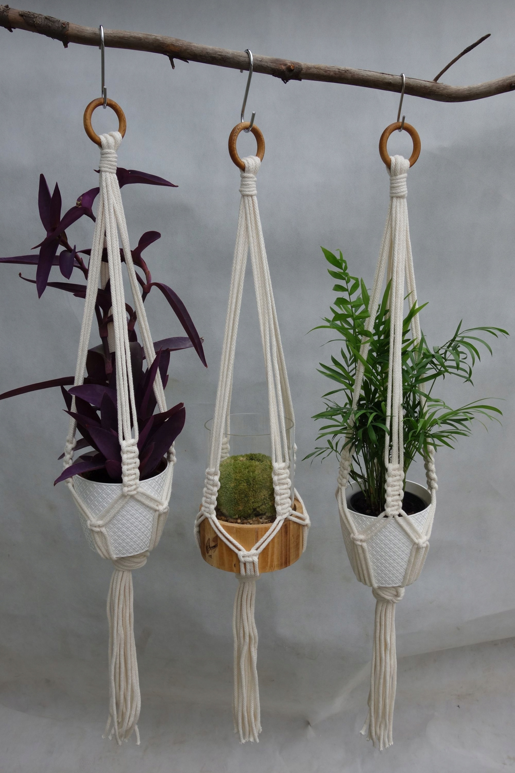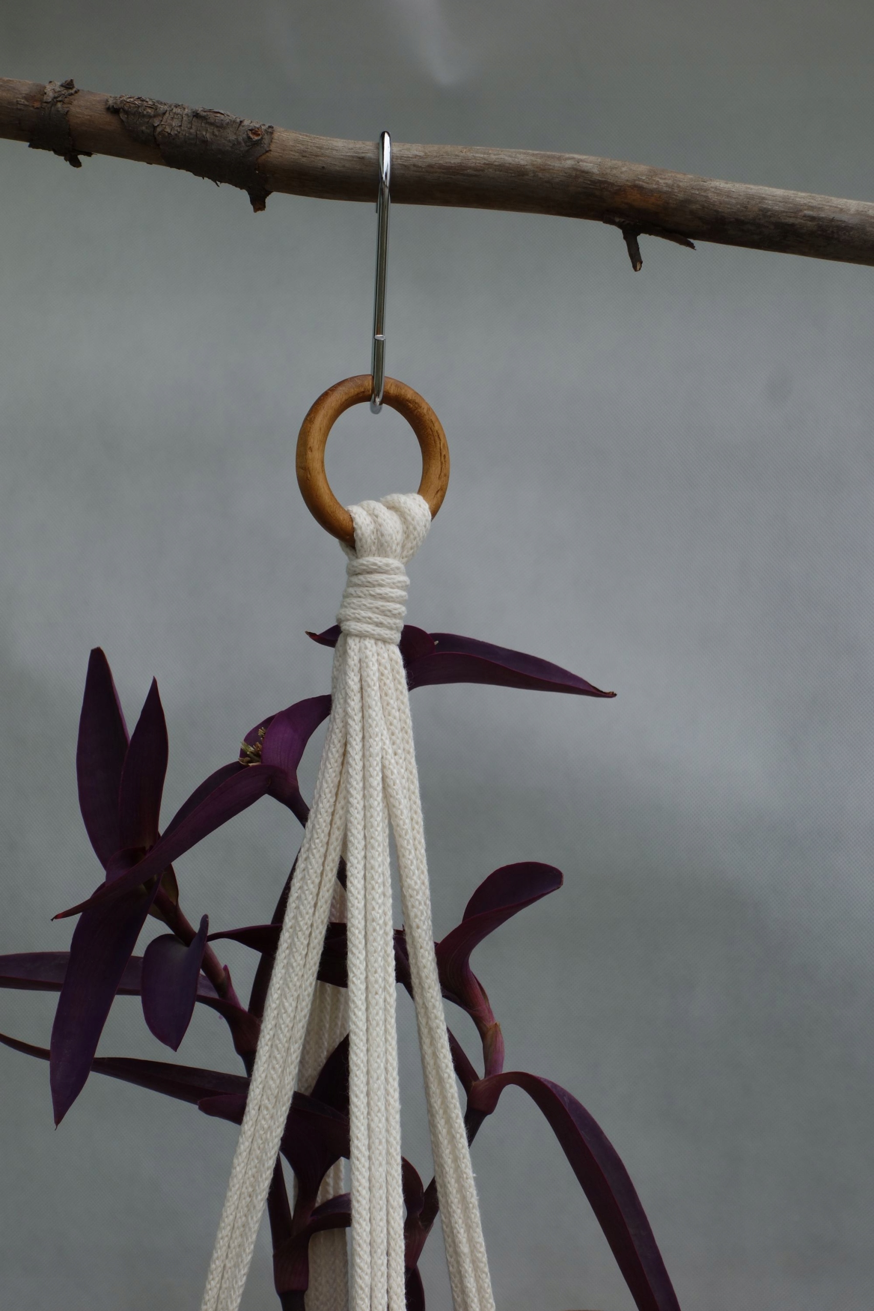 Підставка для квітів з бавовняної нитки товщиною 5 мм з дерев'яним кільцем на кінці. Колір клумби ECRUабо інший колір за зразком.