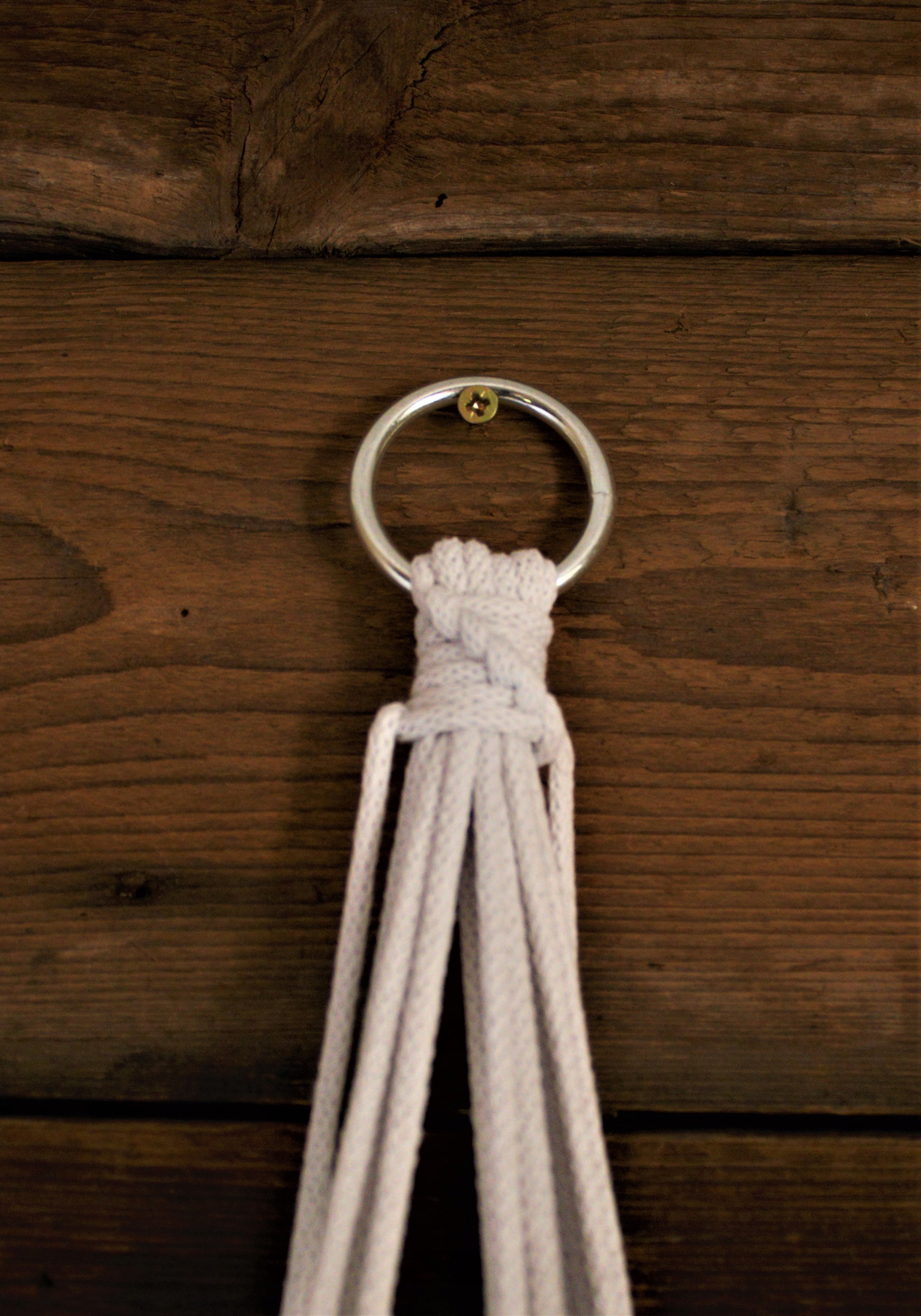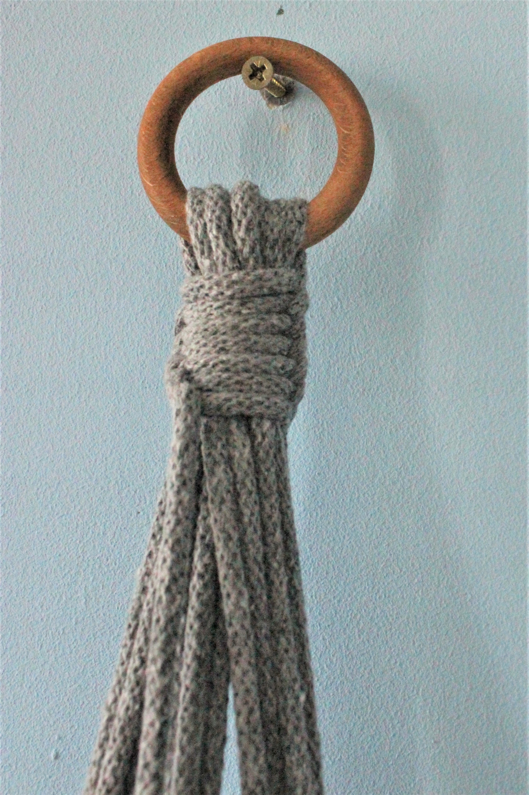 Підставка для квітів з плетеної бавовняної нитки товщиною 5 мм, оздоблена дерев'яним кільцем (або металевим кільцем, вказавши цю інформацію в коментарях). Ручне плетіння. Колір підставки на вибір.
