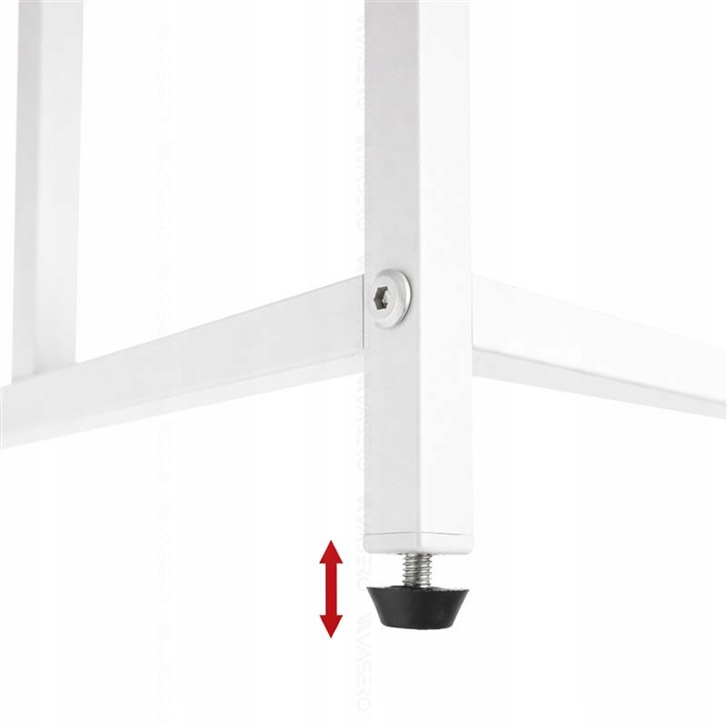 Підставка для квітів виготовлена з міцних сталевих профілів з порошковим покриттям у елегантний білий мат. Цей спосіб обробки забезпечує стійкість до подряпин і тривале використання.