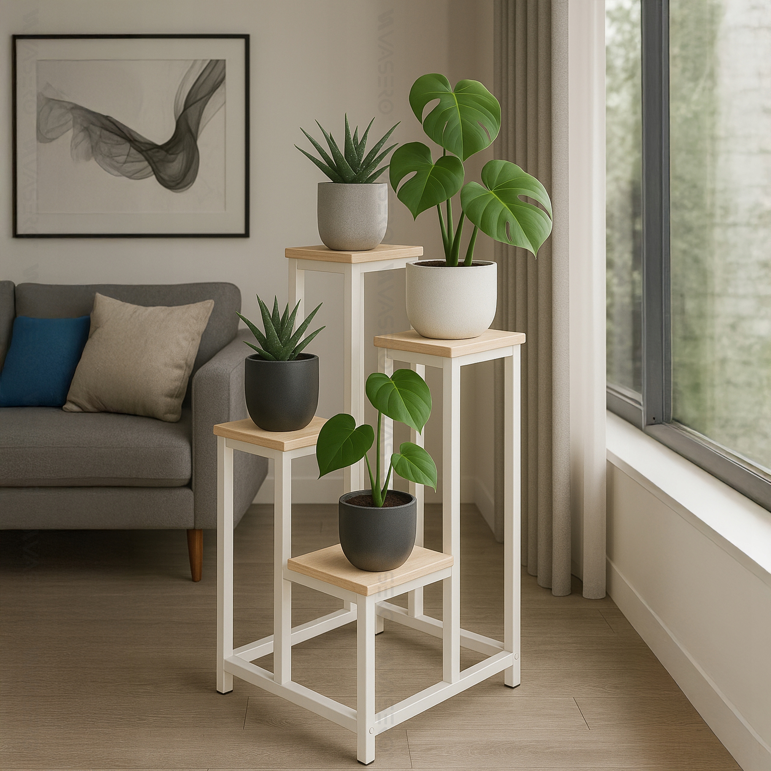 Довговічний і стабільний – Міцна конструкція забезпечує безпечне розміщення горщиків і декорацій, а високоякісні матеріали гарантують довговічність протягом багатьох років. Підставка під квіти відмінно підійде не тільки в квартирі, але і в офісі.
