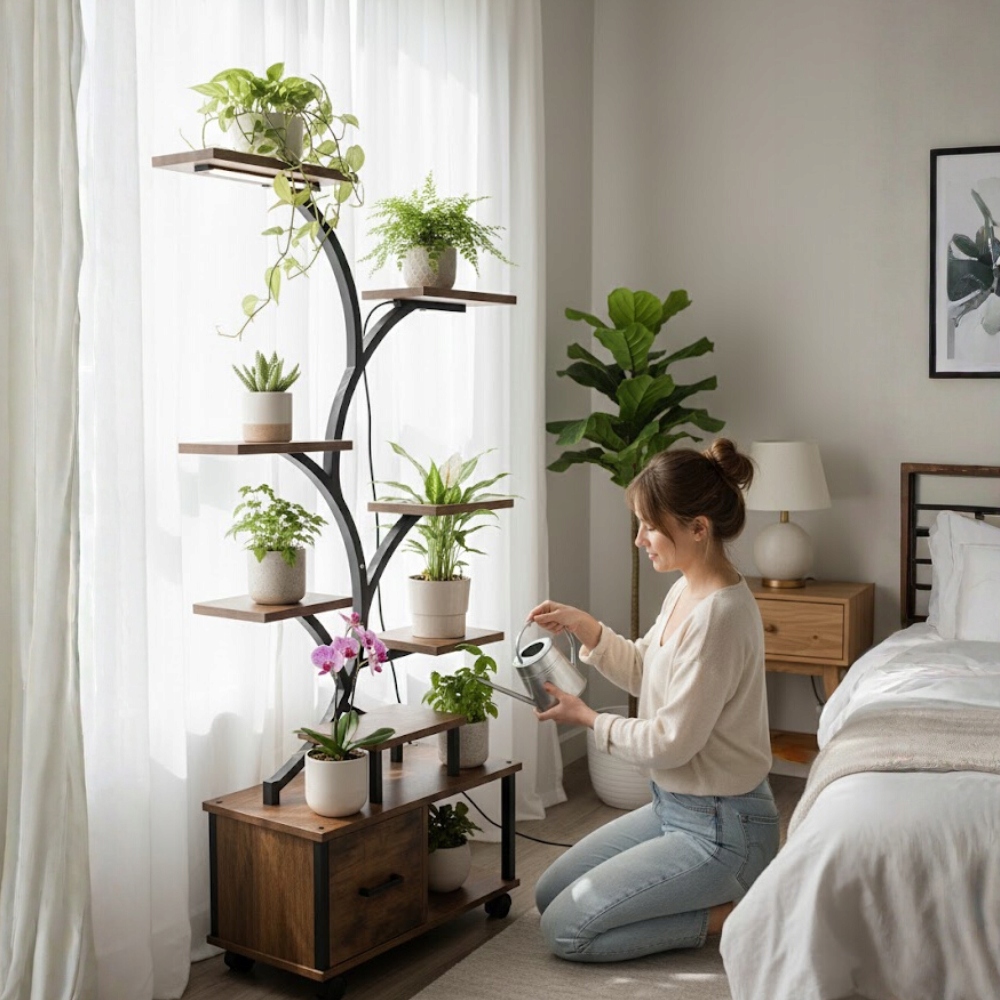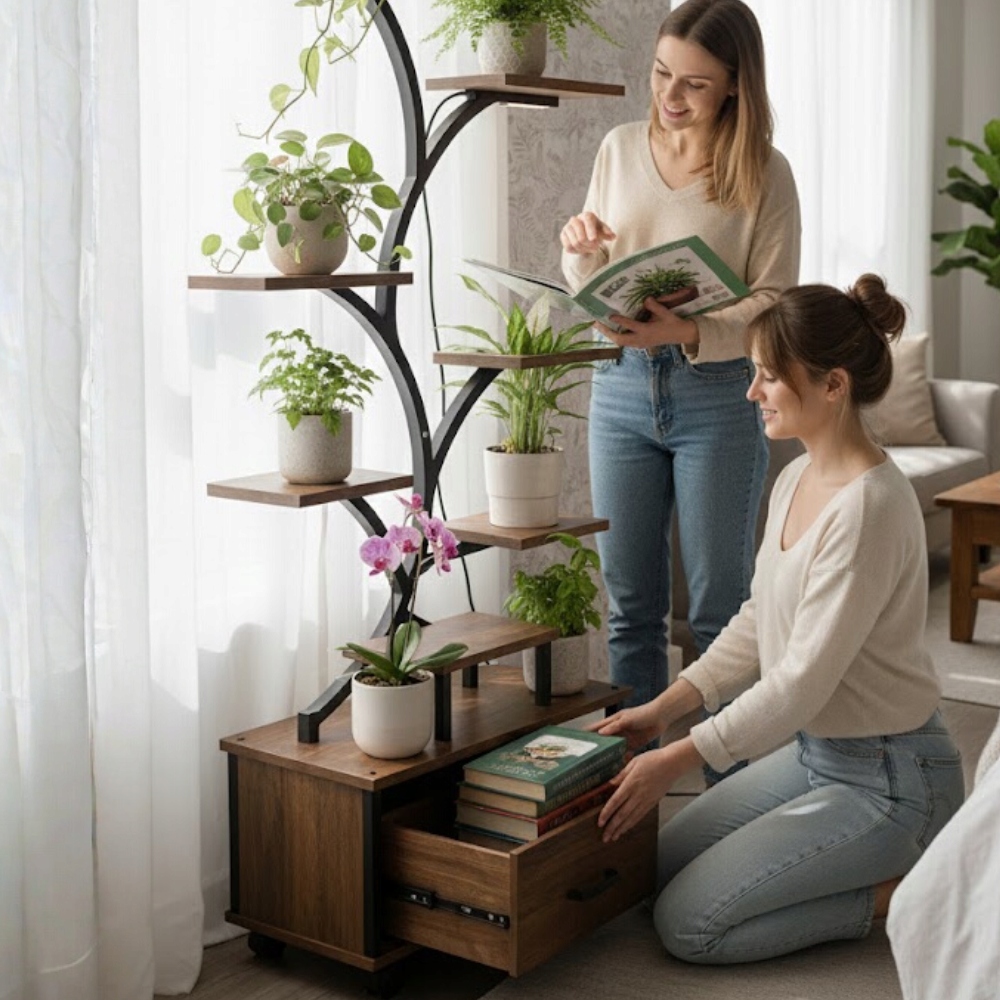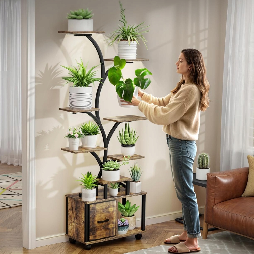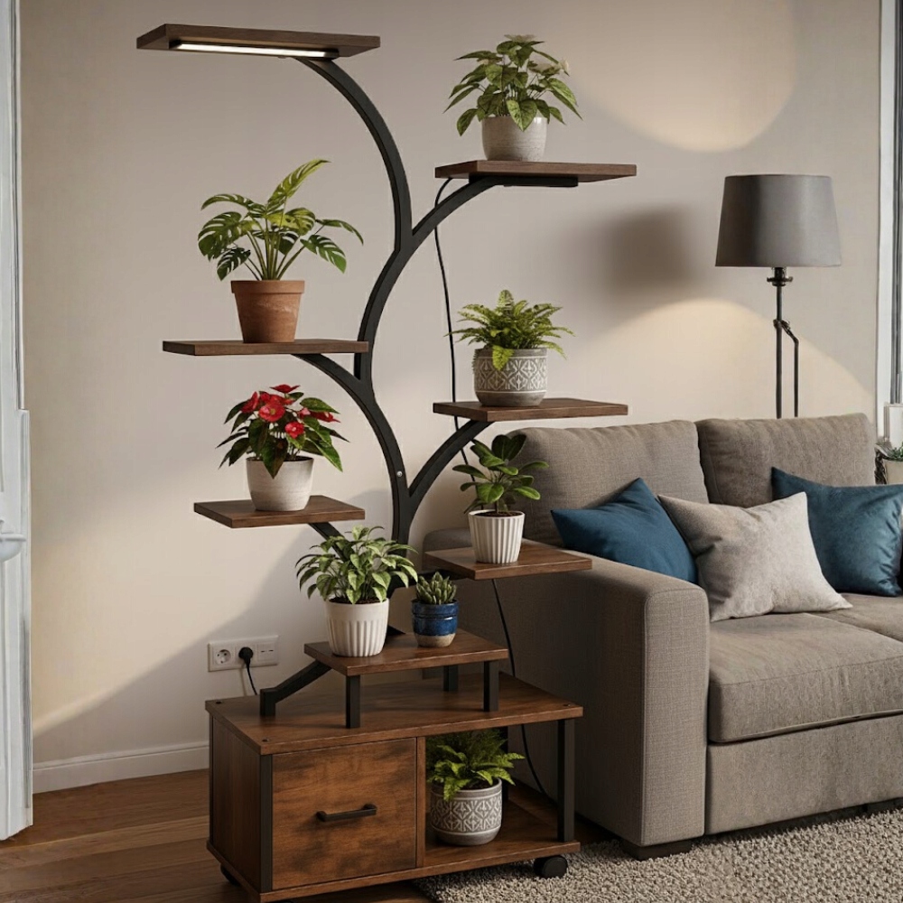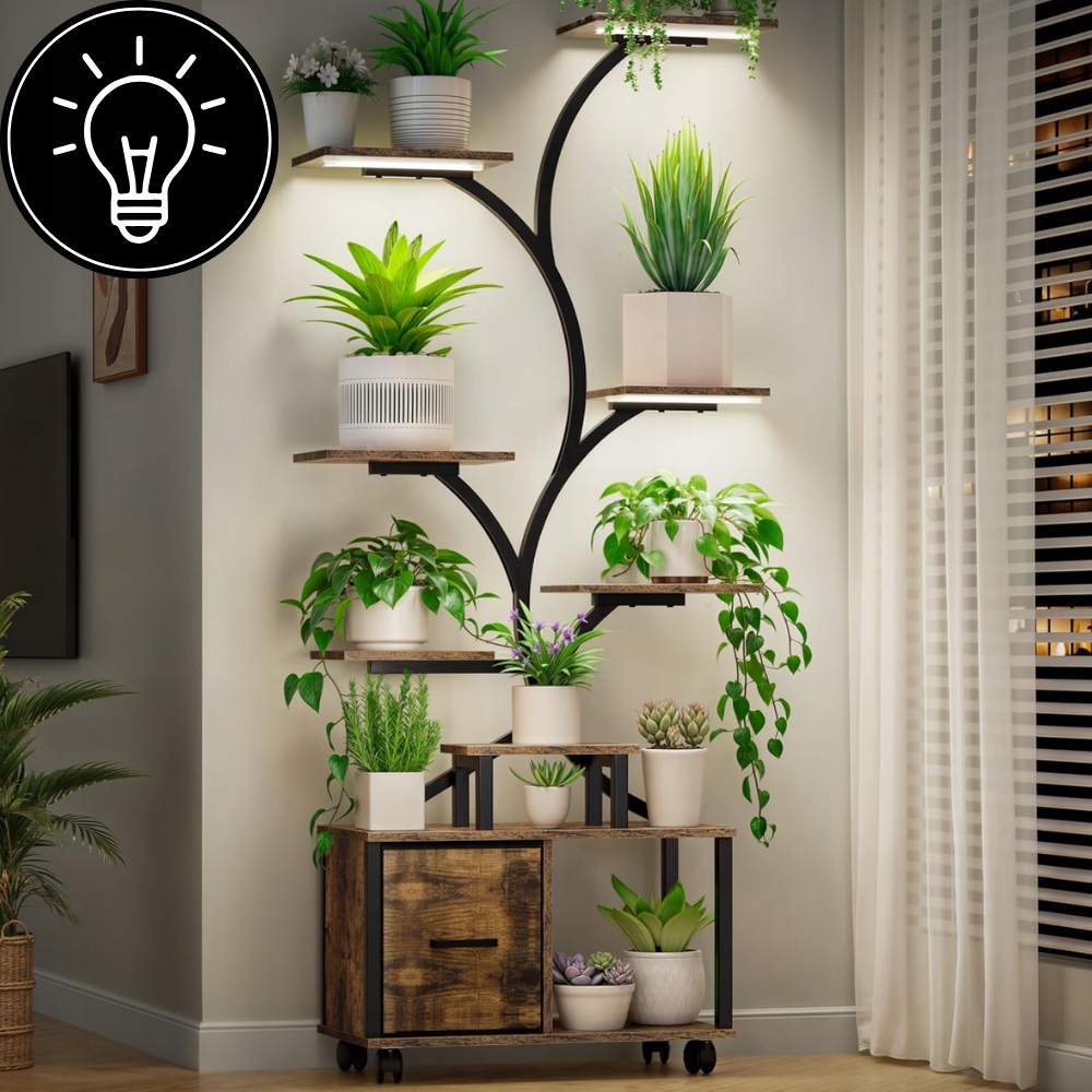 Ця унікальна підставка/полиця для рослин у вигляді дерева створена для людей, які цінують естетику, якість і продуманий дизайн інтер'єру. Це дозволяє чудово демонструвати рослини навіть у місцях, позбавлених природного освітлення, створюючи гармонійну та елегантну зелену зону.