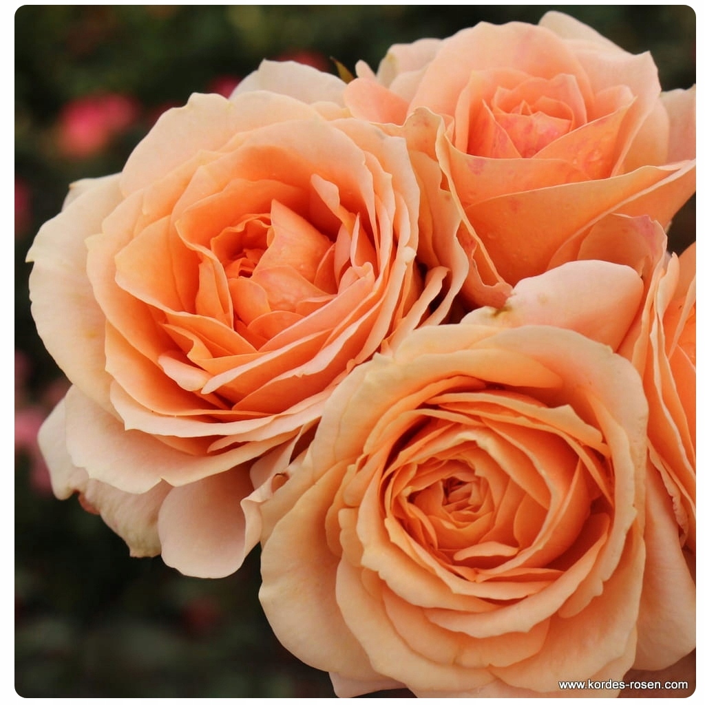 Цей ніжний, ненав'язливий оранжево-абрикосовий тон дозволяє цій троянді ідеально поєднуватися з іншими рослинами нашого саду. Цікаве поєднання світлих кремових квіток абрикоса з помаранчевими розпускаючимися бутонами створює своєрідну барвисту мозаїку.