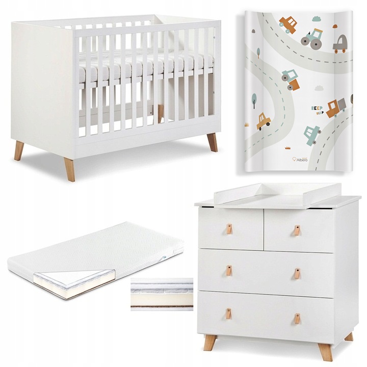 KLUPŚ Дитячі меблі Комплект меблів NOAH + матрац Sensillo + м'який сповивальний килимок Albero Mio