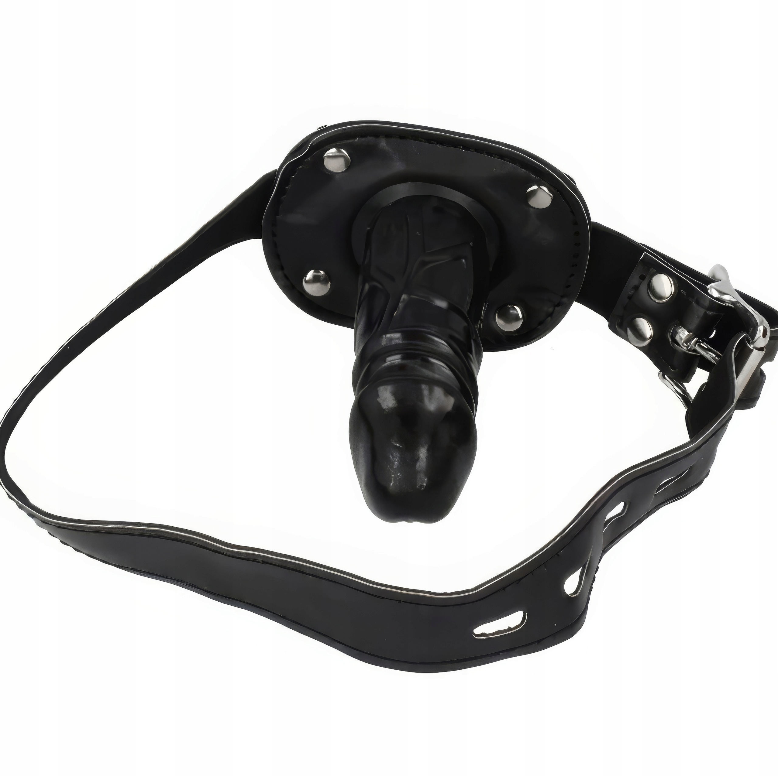 Шкіряний кляп з фалоімітатором Гелевий регульований ремінь на блискавці БДСМ Фетиш аксесуари
