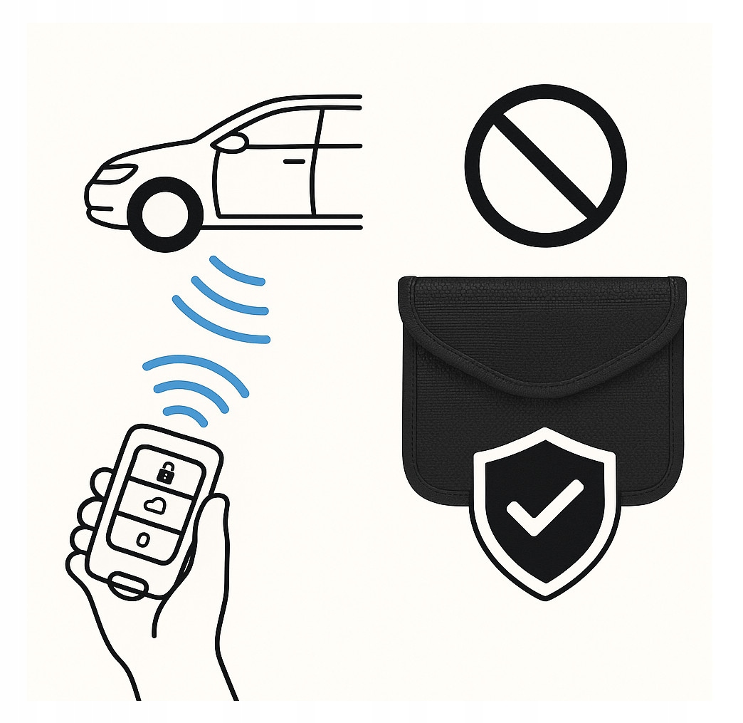 - крадіжки сигналу з клавіші автомобіля -Злодії можуть зафіксувати сигнал з SO -зведеного "ключового входу", щоб відкрити та запустити автомобіль без фізичного контакту з ключем. Введення ключа в цьому випадку блокує викиди сигналу. 4 Він перестає надсилати та приймати сигнали.