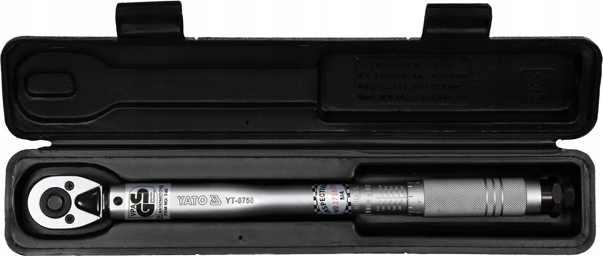 Ключ виготовлено з хромованадієвої сталі, що забезпечує його довговічність і міцність. Має механічний натяг динамометричної тріскачки, яка при досягненні потрібного зусилля затягування стрибає за один зубець, видаючи характерний звук. Шкала крутного моменту розташована в ручці ключа і регулюється її обертанням. Після налаштування потрібного крутного моменту зафіксуйте гайковий ключ замком на кінці ручки.