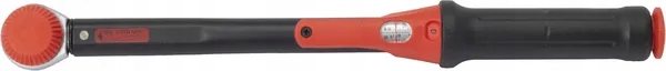 Деталі продукту: Виготовлено з хромованадієвої сталі. Коли досягається потрібний крутний момент, механічний натягувач з’єднувального пристрою стрибає на одну сходинку, створюючи звукове клацання. Після встановлення потрібного крутного моменту ключ може бути зафіксованим на місці Ручка виготовлена з міцного пластику і має ергономічну форму з точністю шкали 3%
