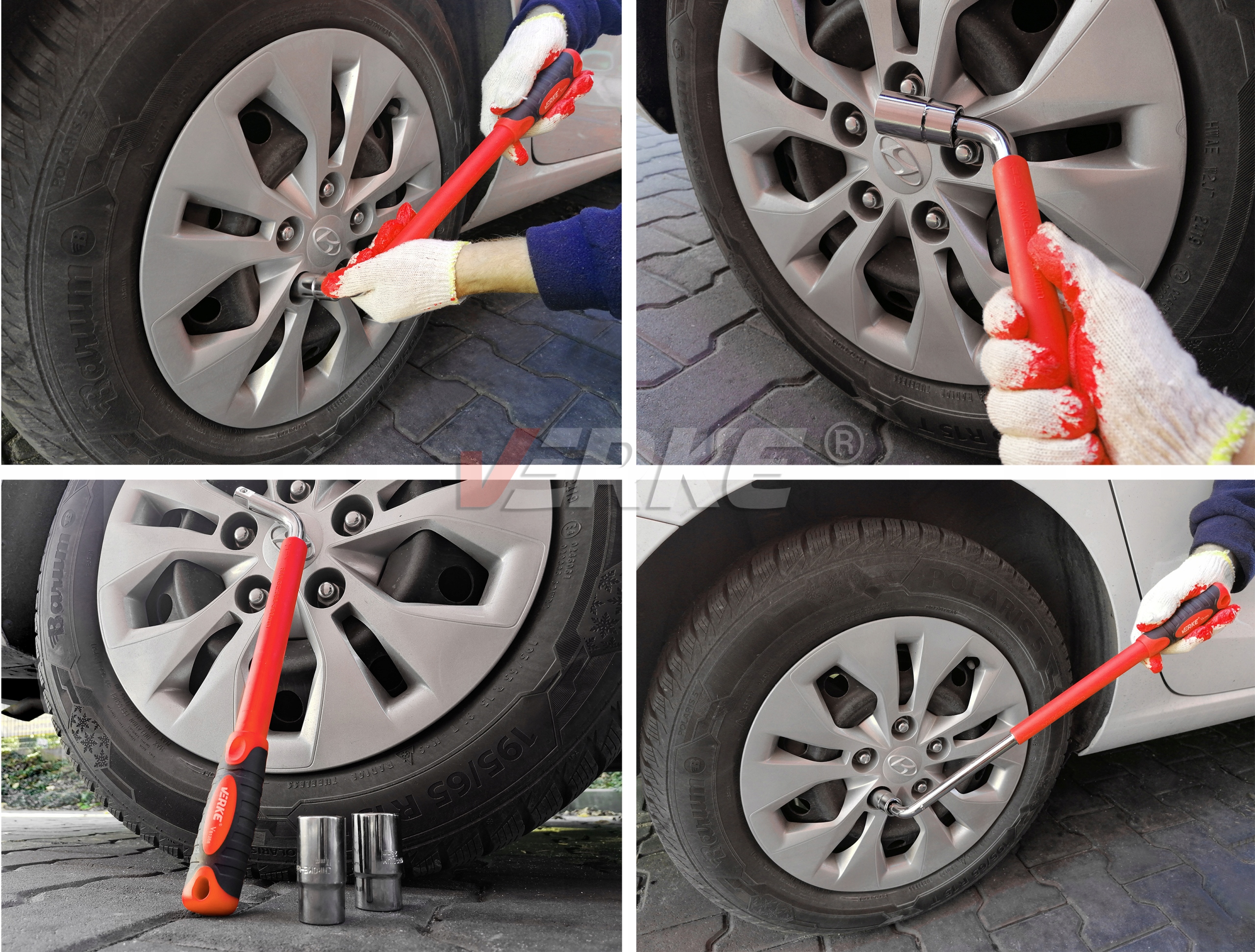 ✅ ПРОФЕСІЙНИЙ ТЕЛЕСКОПІЧНИЙ КЛЮЧ ДЛЯ КОЛІС VERKE 17-19 / 21-23 мм CR-V + 2 ГОЛОВКИ – ТИП L З ГУМОВОЮ РУЧКОЮ