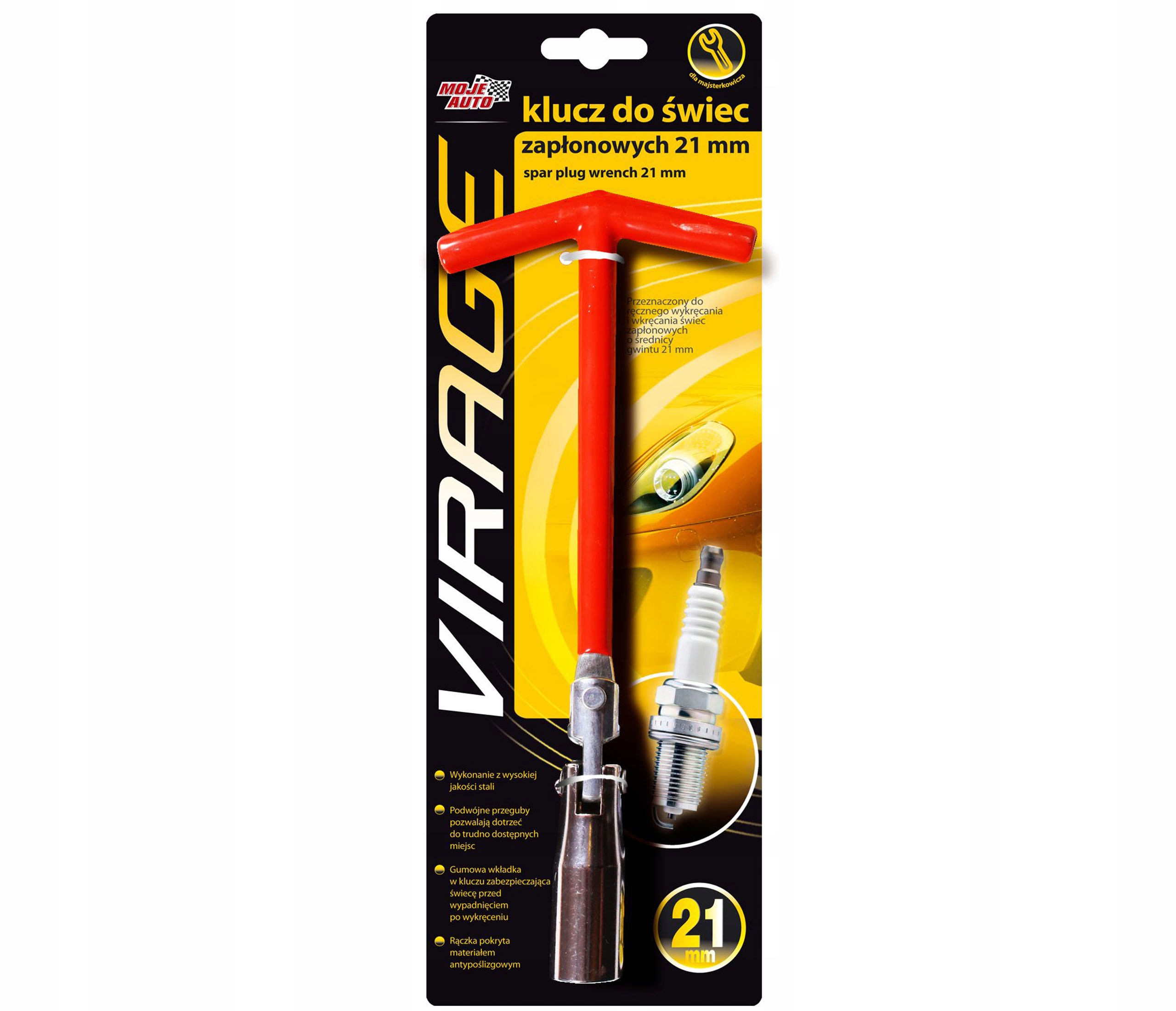 ОПИС: УНІВЕРСАЛЬНИЙ СВІЧНИЙ КЛЮЧ НА 21 мм З РУЧКОЮ АНТИ КЛИЗКУ.