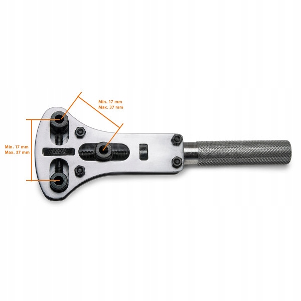- Регулювання губок від 17 до 37 мм завширшки – стандартний діапазон, який підходить для більшості задніх корпусів.