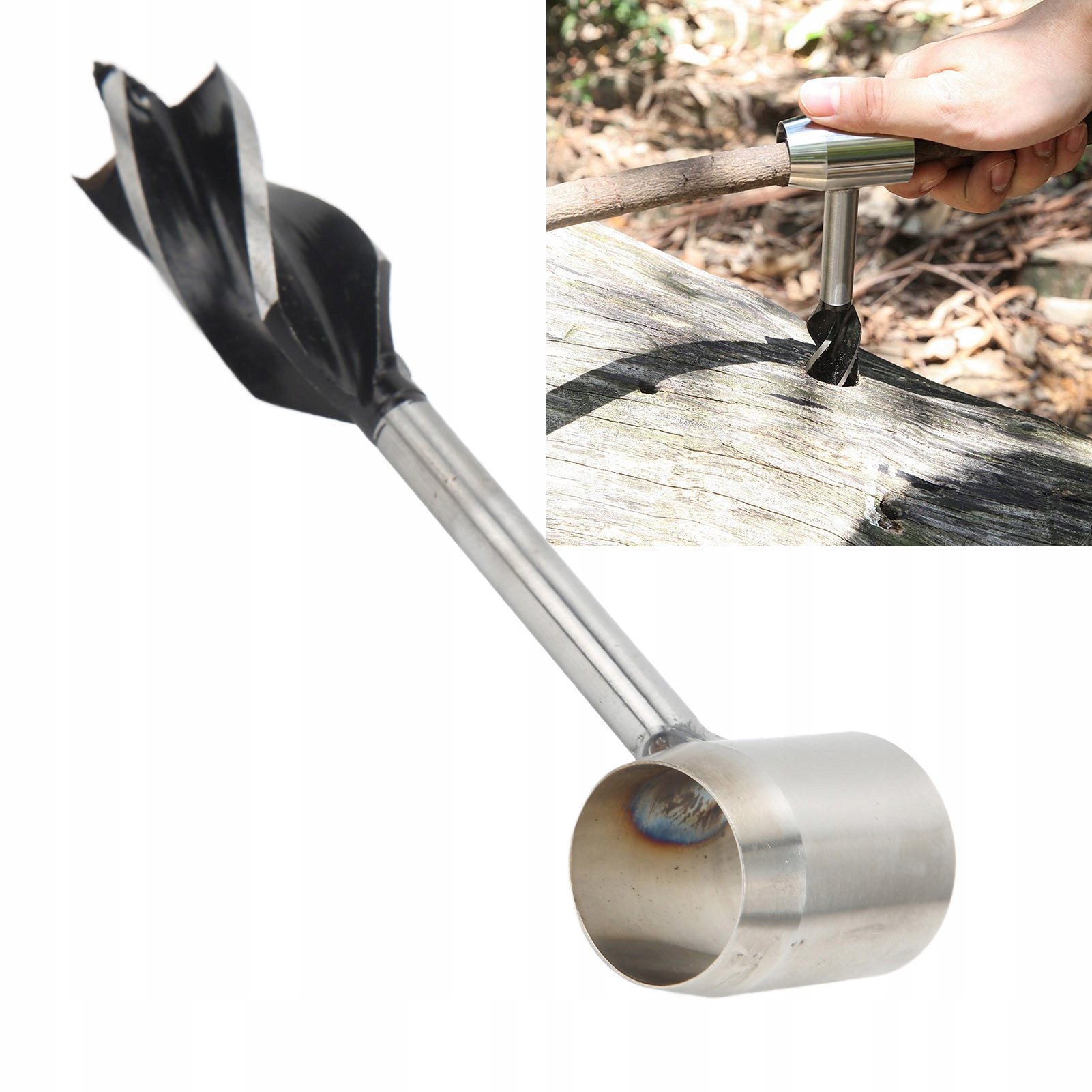 2. Проста операція: поверніть шнек для деревини туди, куди потрібно свердлити, використовуйте дерев’яну палицю через вушко як важіль, щоб завершити свердло