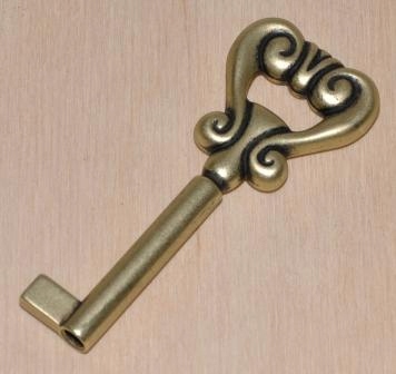Опис: ключ виготовлений з металу (литий), покритий шаром старого золота/патини. Це типовий ключ, який колись широко використовувався в багатьох предметах меблів і використовується досі. Ключ не тільки дуже естетично виготовлений, він підходить до більшості накладних та врізних замків польського виробництва.
