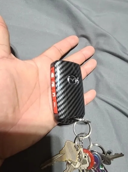 Твердий пластиковий чохол з ABS для карбонового ключа з червоною силіконовою вставкою на кнопках для моделей smart keyless MAZDA 4-кнопкова версія: b>