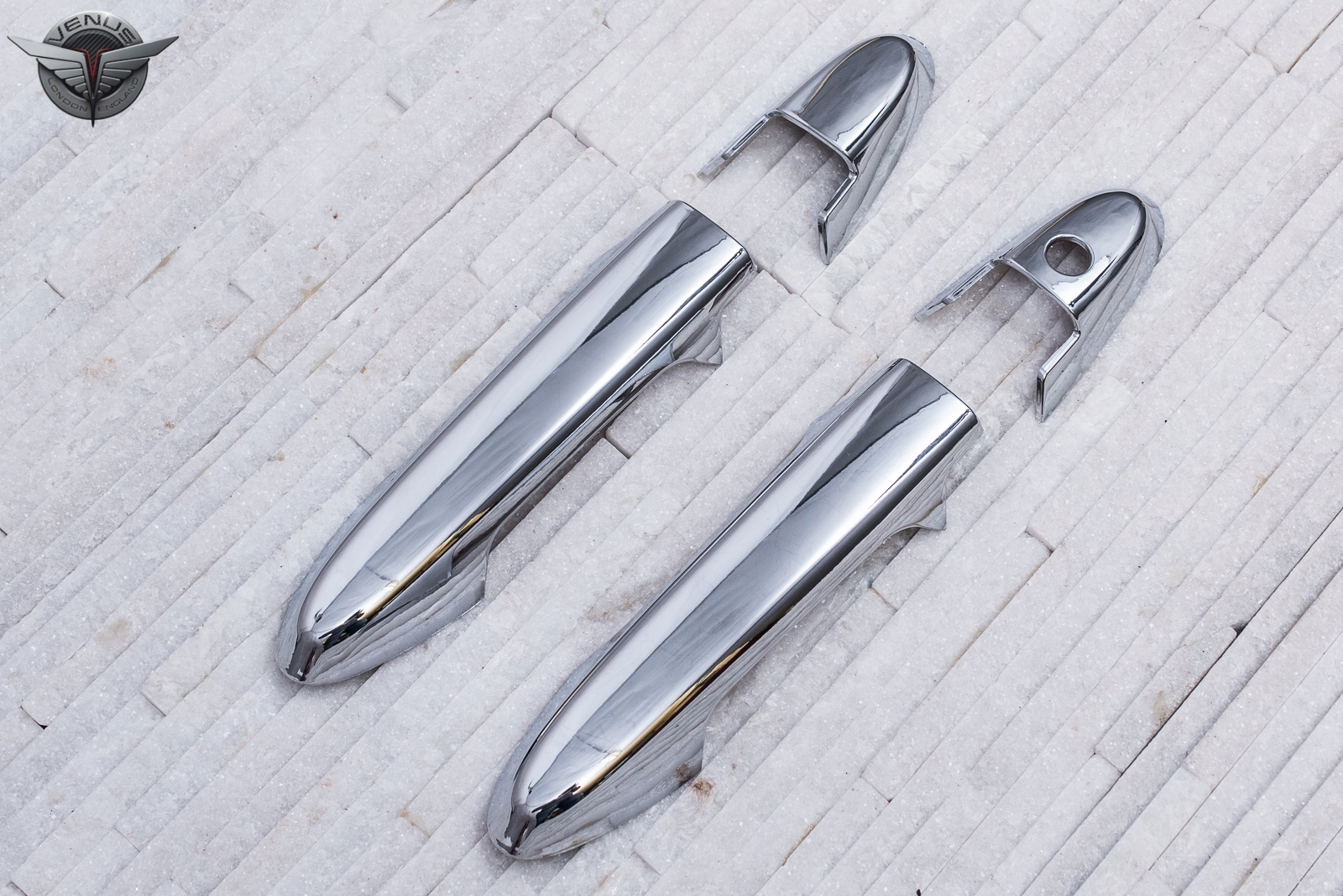Декоративні хромовані накладки на дверні ручки є доповненням, яке доповнює стиль автомобіля ноткою спортивної елегантності. Ідеально підібрані до контурів автомобіля, вони змінюють образ дверних ручок Honda HR-V, роблячи їх справжньою окрасою автомобіля. Виріб виготовлено з високоякісного хромованого ABS пластику.