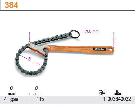 КЛЮЧ ЛАНЦЮГОВИЙ ДЛЯ ТРУБИ FI 4'' 115ММ BETA 384