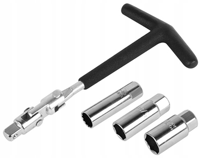 Універсальний ключ для свічок запалювання зі змінними головками. Дозволяє ефективно та швидко замінювати свічки запалювання та встановлювати нові.