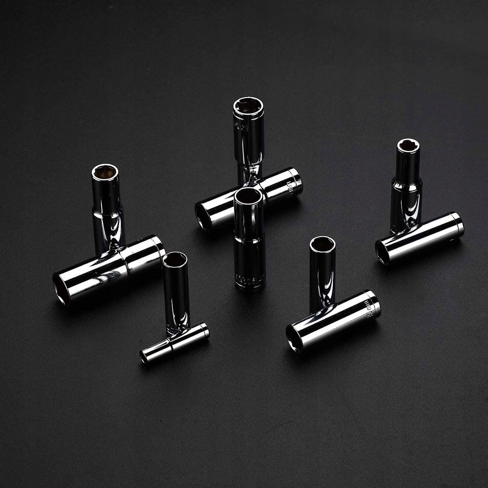 Набір торцевих ключів 1/4" складається з 46 елементів, виготовлених з високоякісної хром-ванадієвої сталі.