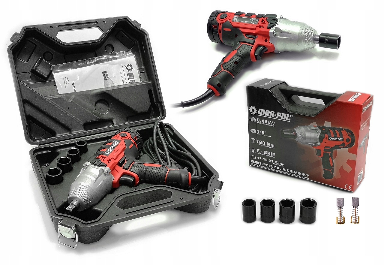 Хвостовик квадратний 1/2". Ключ має змінні щітки зовні. Рукоятка і частина корпусу антиковзких покриті гумою. Вигідне розташування центру ваги завдяки ручці в середині електроінструменту забезпечує більш надійний хват і не втомлює зап'ястя. Ключ поставляється в практичному чохлі.