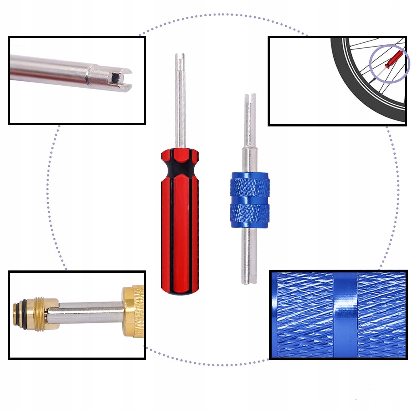 Особливості продукту: anti -slip ручка ручки можна легко повернути, і на вибір є поодинокі та подвійні головки, які можна використовувати для видалення серцевини клапана кондиціонера автомобіля та клапана шини.