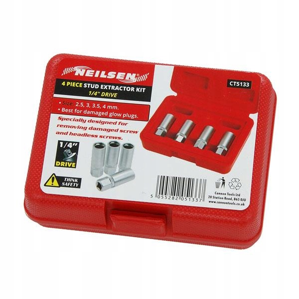 Набір спеціально розроблений для видалення пошкоджених гвинтів і гвинтів без голівок, що може бути особливо корисним для пошкоджених свічок розжарювання, які іноді затягнуті, і їх важко видалити традиційними методами.