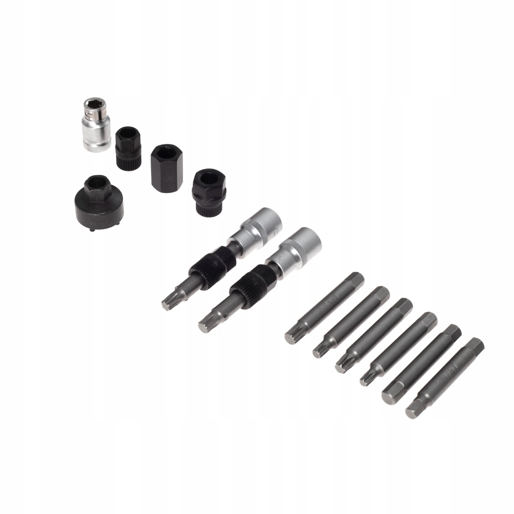 Багатий набір ключів для монтажу та демонтажу генераторів із муфтою Bosch, Magneti Marelli. Адаптований до автомобілів марок Audi, BMW, Fiat, Ford, Mercedes, Opel, Porsche, Renault, Peugeot, Seat, Skoda, Volvo, VW та інших марок