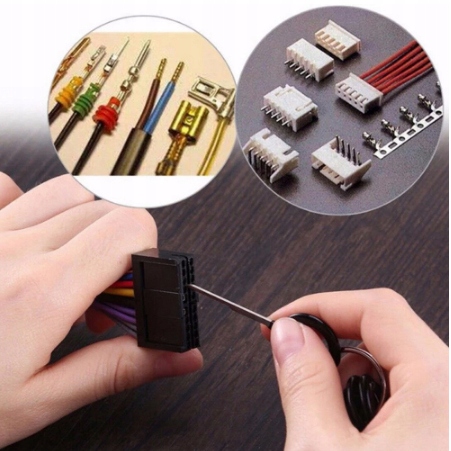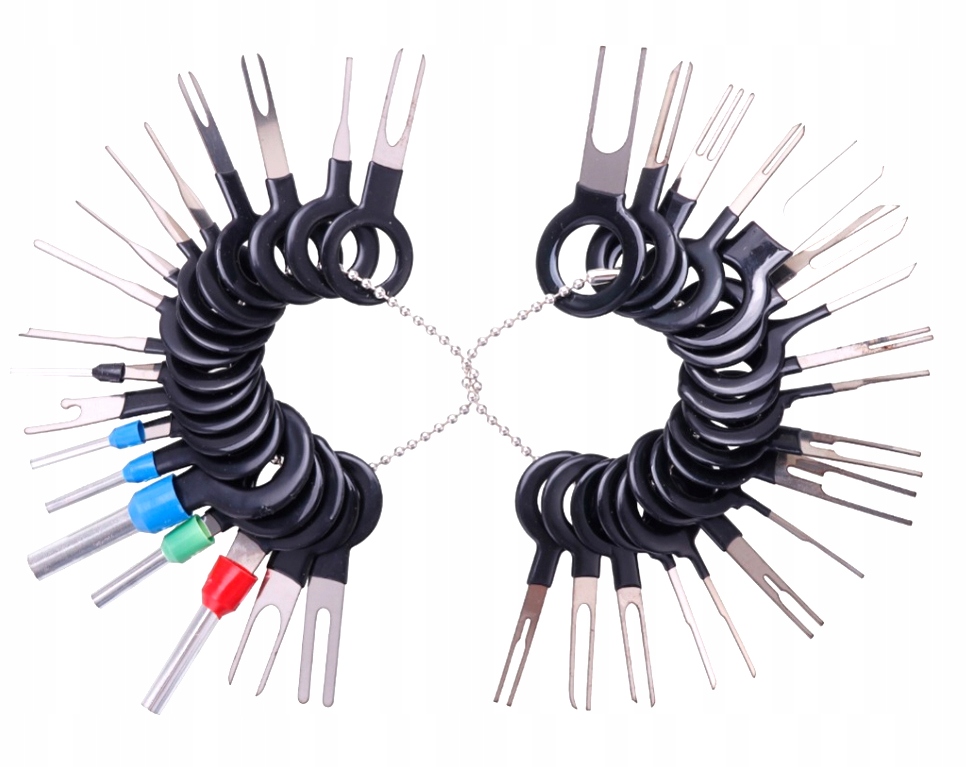 Набір з 38 гайкових ключів для демонтажу штифтів і конекторів з ручкою, покритою гумою, що підвищує комфорт роботи, є необхідним обладнанням для кожного електрик та електронник. Корисно для модифікації та ремонту електроустановок в автомобілях, мотоциклах, човнах тощо. Також корисно вдома для ремонту побутової техніки / електроніки / комп’ютерів та інших... ергономічна форма дозволяє дуже легко розбирати штифти. Також можна працювати зі зламаним штирем або погнутою пластиною з’єднувача, не пошкоджуючи контакти – завдяки найкращій конструкції на ринку вони виходять практично самі.