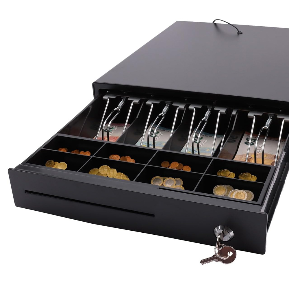 ✅- Має 4 відділення для банкнот і 8 відділень для монет, що дозволяє ефективно організовувати та зберігати різні види готівки, оптимізуючи таким чином платіжний процес.