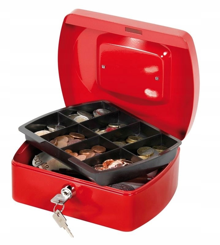 - Скринька для грошей середнього розміру, виготовлена зі стійкого до подряпин металу з порошковим покриттям