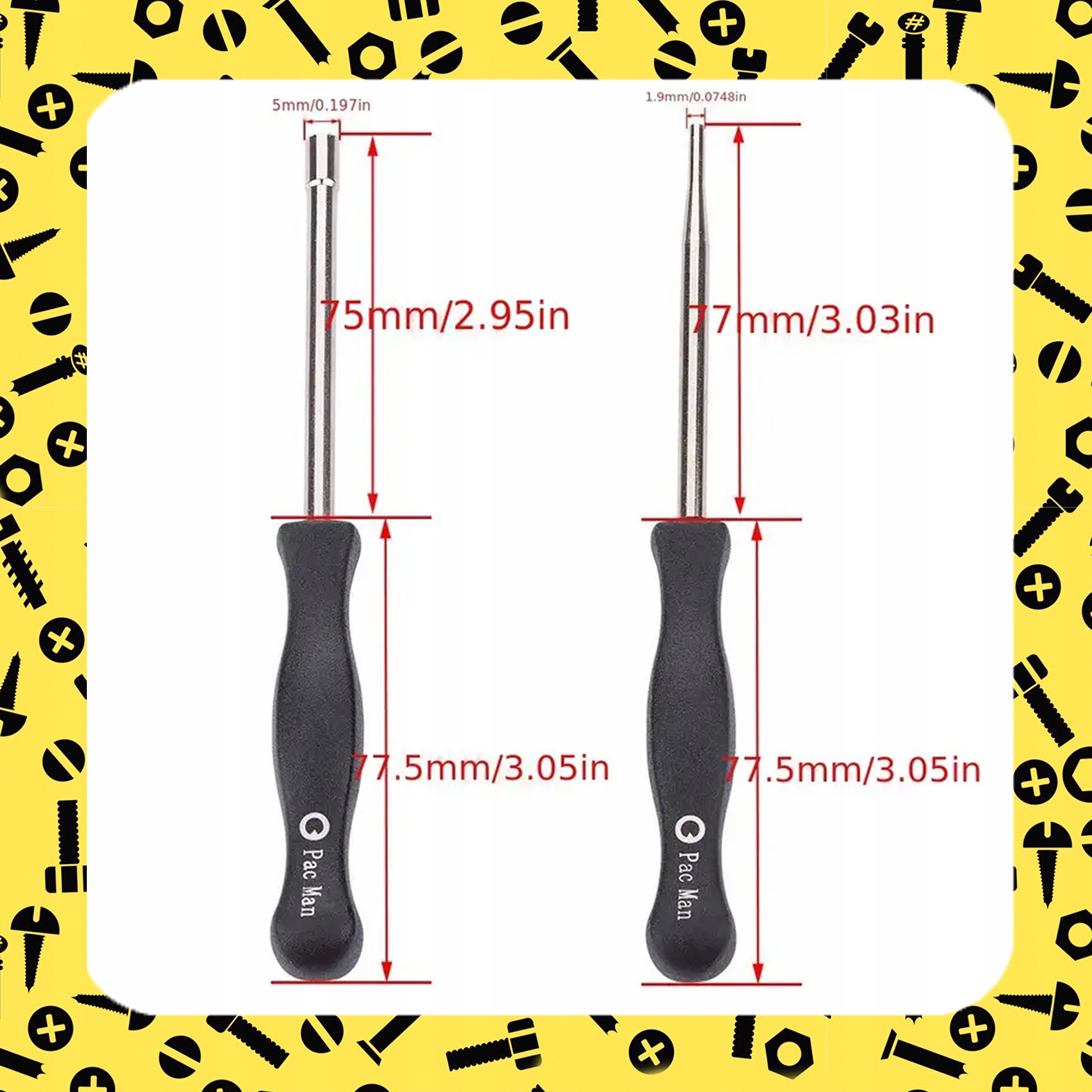 Кожен ключ спеціально розроблено для роботи з різними типами гвинтів для регулювання карбюраторів різних моделей двигунів. Ключі виготовлені з міцної нержавіючої сталі, що забезпечує їх довговічність і стійкість до корозії.