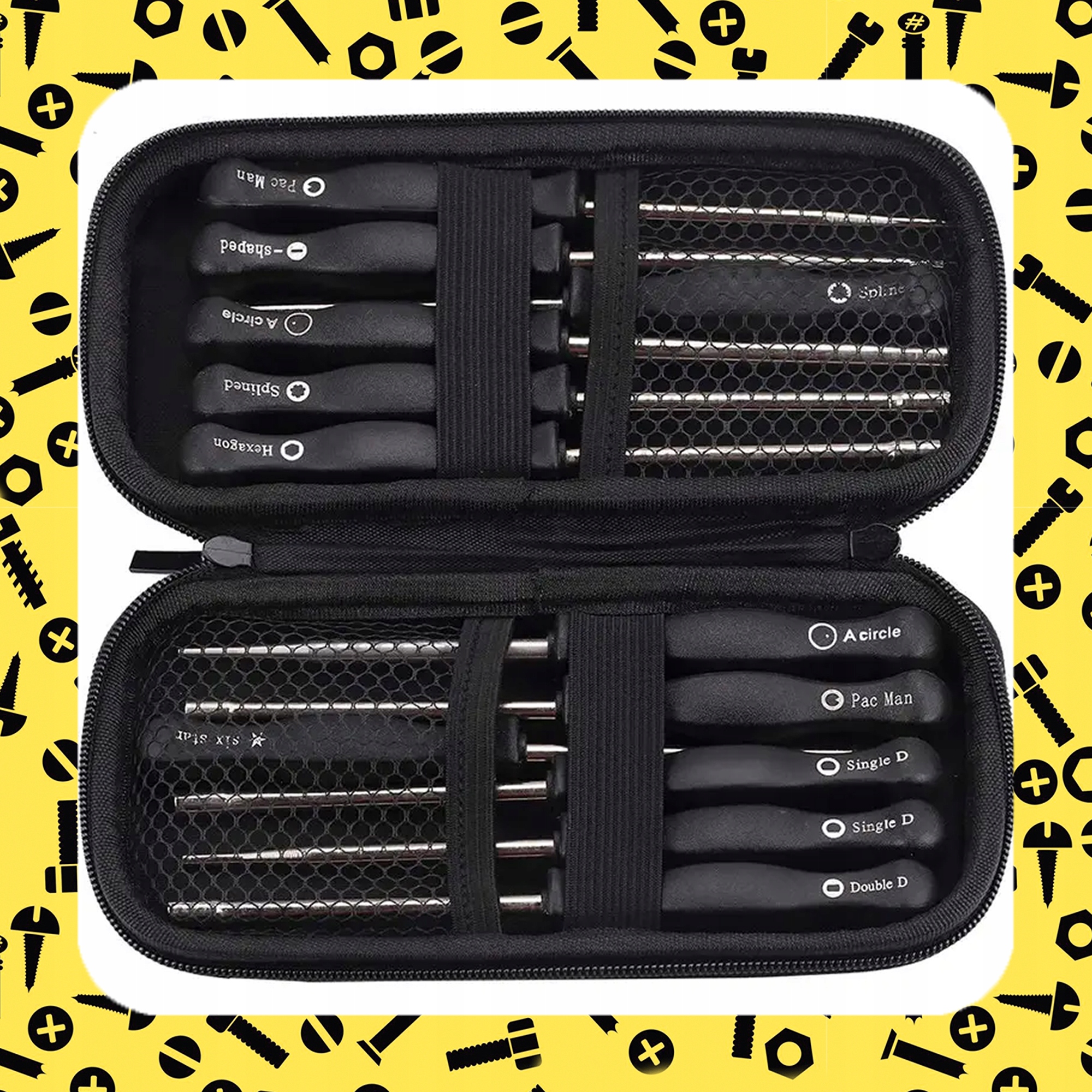 - Практична упаковка: набір поставляється в міцному портативному футлярі, який полегшує зберігання та організацію ключів. Чохол також захищає інструменти від пошкоджень і полегшує їх транспортування.