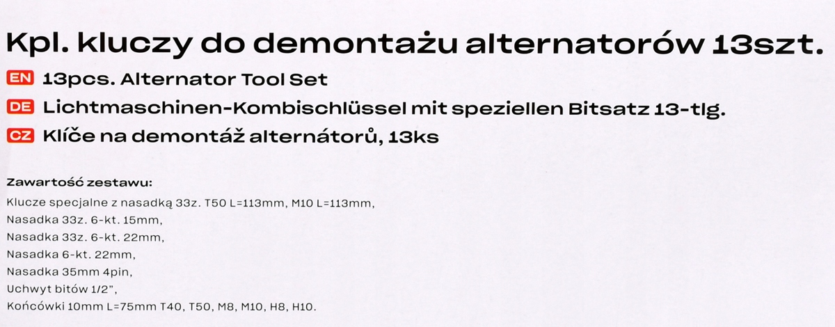 НАБІР КЛЮЧІВ ДЛЯ РОЗБІРКИ ГЕНЕРАТОРА 13 ШТ
