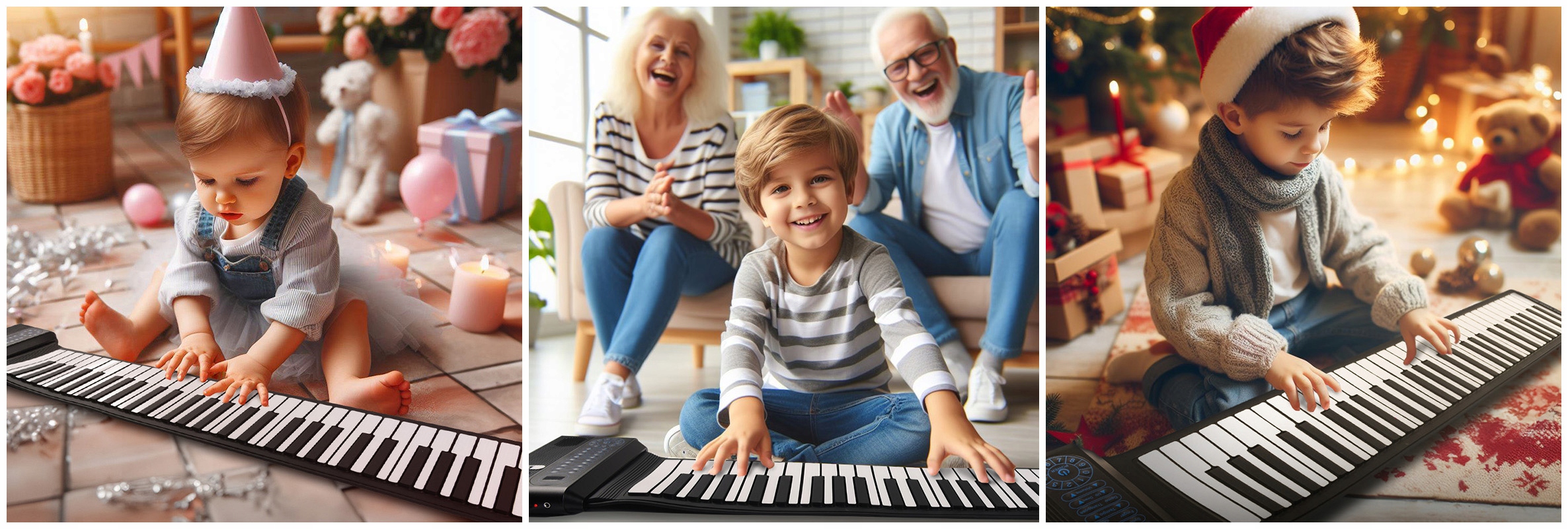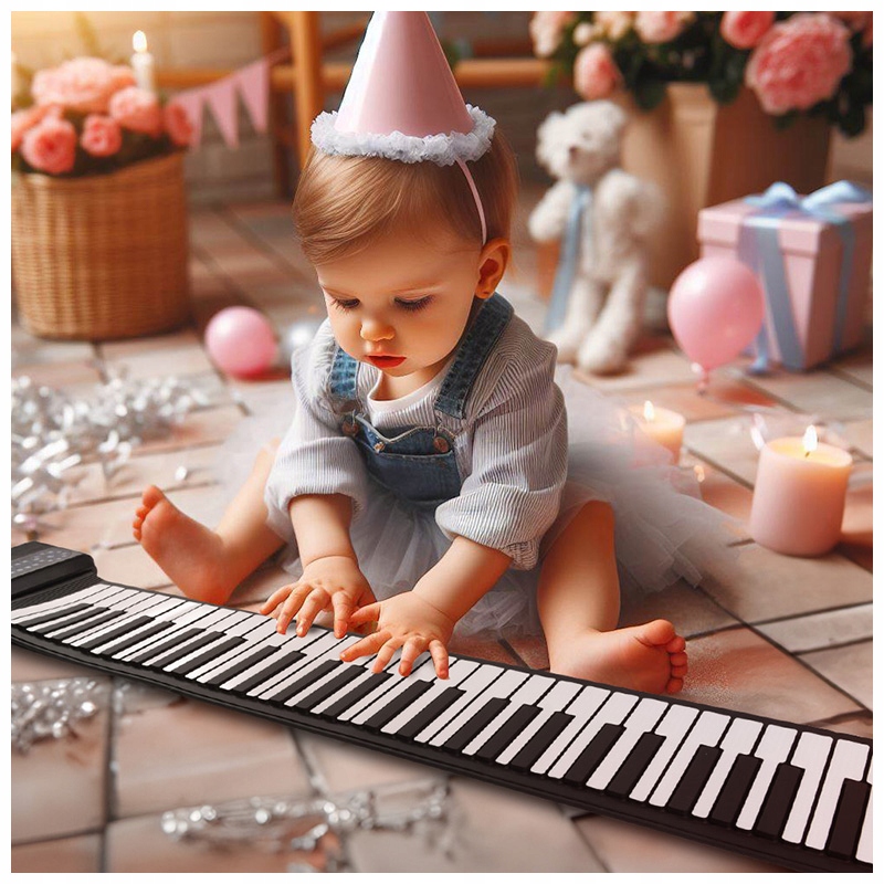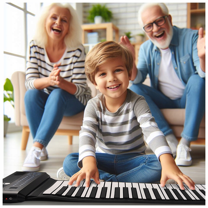 DNA ROLL 61 – це цифрова клавіатура, яка згортається, яка ідеальний інструмент для навчання та гри зі звуком. Ви можете брати його з собою у відпустку, використовувати під час подорожі чи просто вдома. Скручувана клавіатурає гнучкою, займає мало місця, і коли її розгортають, вона адаптується до форми поверхні, на якій вона розміщена.