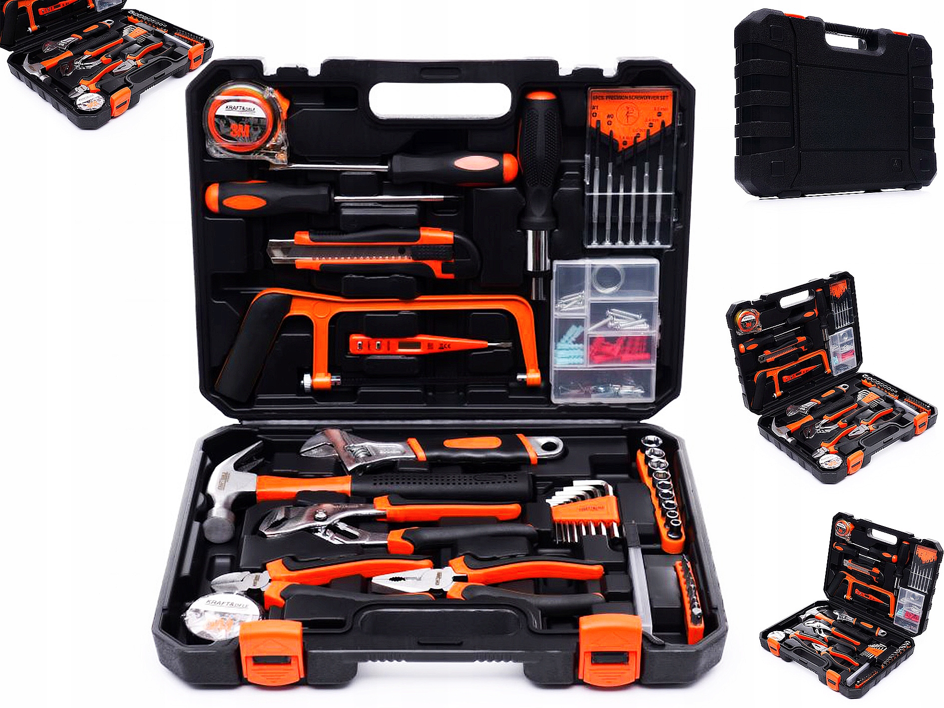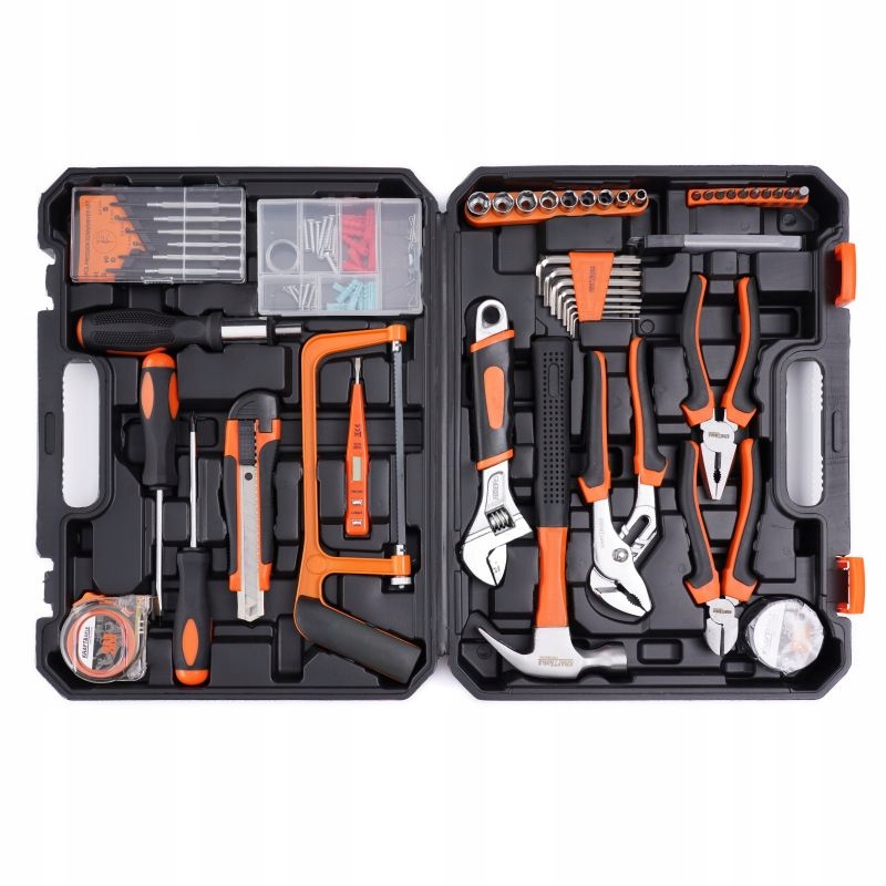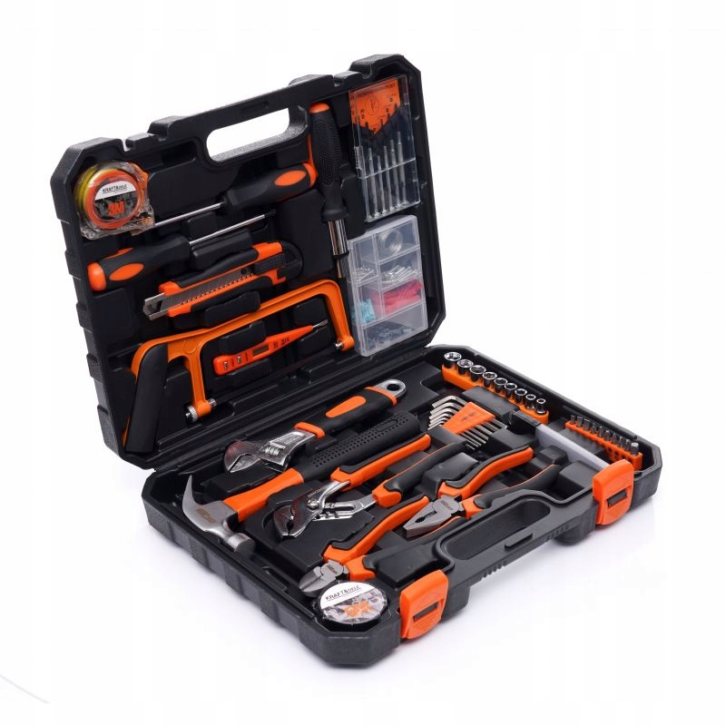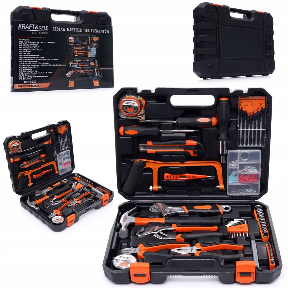 Увесь набір складається зі 100 різних елементів, які забезпечать правильний інструмент для ваших потреб. Інструменти виготовлені із загартованої хромованадієвої (CrV) сталі, призначеної для майстерень. Хром гарантує стійкість сталі до корозії, окислення, стирання та високу стійкість до високих температур. Додавання ванадію пригнічує ріст зерна під час обробки, одночасно збільшуючи пластичність як загартованих, так і відпущених форм.