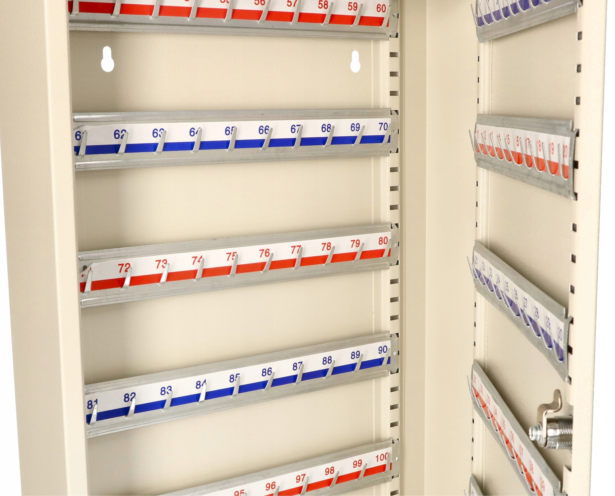 Металева підвісна шафа, призначена для зберігання ключів. Незамінний у таких місцях, як офіси консьєржа готелів, офісні будівлі, школи, склади та приватні будинки.