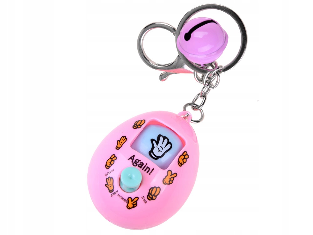 Барвисте ключове кільце з яйцем з грою чудово підходить для шкільного рюкзака, гаманця. Ключове кільце має популярну гру «Камінь, папір, ножиці» просто натисніть кнопку, а спінінг -лапа покаже нам заданий знак. Приємний гаджет буде працювати під час очікування автобуса або взяття на рослину з другом.