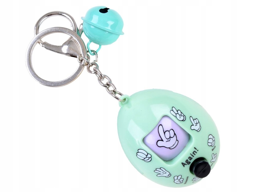 До шкільного рюкзака чи сумочки ідеально підійде барвистий брелок у формі яйця з грою. У брелок вбудована популярна гра «камінь, ножиці, папір» - достатньо натиснути кнопку, і обертова лапка покаже нам заданий символ. Класний гаджет стане в нагоді під час очікування автобуса чи укладення парі з другом.
